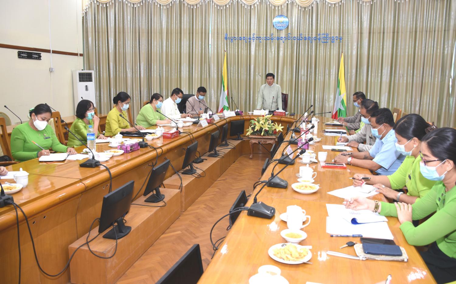 ထို့နောက် ဒုတိယဝန်ကြီး ဦးညွန့်အောင်နှင့် အမြဲတမ်းအတွင်းဝန် ဦးမင်းမင်းတို့က မူပိုင်ခွင့် ဦးစီး ဌာနနှင့်ပတ်သက်၍ ဝန်ကြီးဌာနအနေဖြင့် ဆောင်ရွက်နေမှု၊ ဆက်လက် ဆောင်ရွက်ရမည့်လုပ်ငန်း များကို ရှင်းလင်းတင်ပြကြပြီး မူပိုင်ခွင့်ဦးစီးဌာန ညွှန်ကြားရေးမှူးချုပ် ဒေါက်တာမိုးမိုးသွယ်က မူပိုင်ခွင့်ဦးစီးဌာန၏ လုပ်ငန်းများဆောင်ရွက်နေမှု၊ ဆက်လက်ဆောင်ရွက်မည့် လုပ်ငန်းများ၊ ကုန်အမှတ်တံဆိပ် မှတ်ပုံတင်ခြင်းဆိုင်ရာ ဆောင်ရွက်နေမှုများနှင့် ဆက်လက်ဆောင်ရွက်ရမည့် လုပ်ငန်းများကို ရှင်းလင်းတင်ပြပြီး တင်ပြချက်များအပေါ် ဒုတိယဝန်ကြီးနှင့် အမြဲတမ်း အတွင်းဝန် တို့က လိုအပ်သည်များ ဖြည့်စွက်ပြောကြားကာ ပြည်ထောင်စုဝန်ကြီးက လိုအပ်သည်များ ပေါင်းစပ် ညှိနှိုင်းပေးခဲ့ကြောင်း သိရသည်။