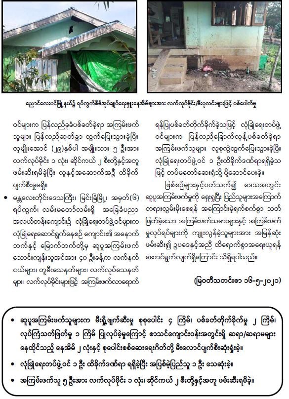 ရှမ်းပြည်နယ် (အရှေ့ပိုင်း)၊ မိုင်းဆတ်မြို့နယ်၊ ဝမ်လုံးကျေးရွာအနီး၌ မူးယစ်ဆေးဝါးများနှင့် မူးယစ်ဆေးဝါးချက်လုပ်ရာတွင်အသုံးပြုသည့် ဆက်စပ်ပစ္စည်းများ သိမ်းဆည်းရမိ