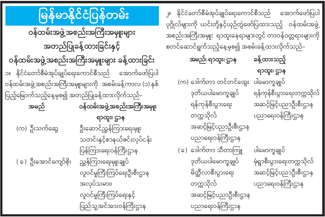 ဝန်ထမ်းအဖွဲ့အစည်း အကြီးအမှူးများ အတည်ပြုခန့်ထားခြင်းနှင့် ဝန်ထမ်းအဖွဲ့အစည်းအကြီးအမှူးများ ခန့်ထားခြင်း 05/28/2021