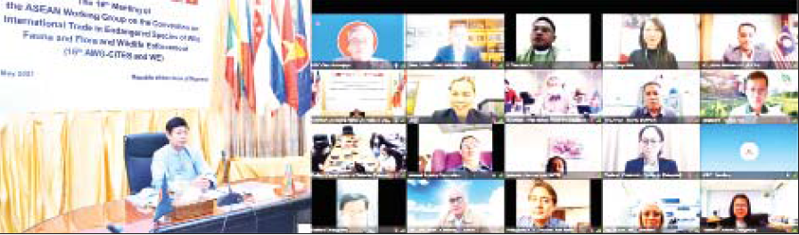 အာဆီယံအဖွဲ့ဝင်နိုင်ငံများက အိမ်ရှင်အဖြစ် အလှည့်ကျလက်ခံကျင်းပလျက်ရှိသည့် (၁၆) ကြိမ်မြောက် ASEAN Working Group on CITES and Wildlife Enforcement အစည်းအဝေးနှင့် “အာဆီယံနိုင်ငံများအကြား တောရိုင်းတိရစ္ဆာန်များ တရားမဝင်ကုန်သွယ်မှုတိုက်ဖျက်ရေး ပူးပေါင်းဆောင်ရွက်ရေးဆိုင်ရာ လမ်းညွှန်စာအုပ် (ASEAN Handbook) ပြုစုခြင်း ဒုတိယအကြိမ် အစည်းအဝေး (2nd ASEAN Technical Meeting on Development of ASEAN Handbook on Legal Cooperation to Combat Illegal Wildlife Trade)" များကို မေ ၂၆၊ ၂၇ ရက်တို့တွင် ဗီဒီယိုကွန်ဖရင့်စနစ်ဖြင့် မြန်မာနိုင်ငံက အိမ်ရှင်အဖြစ် လက်ခံကျင်းပသည်။