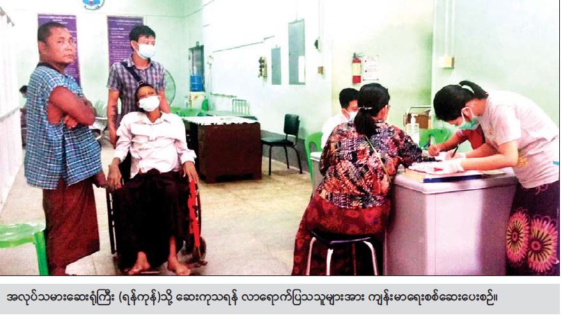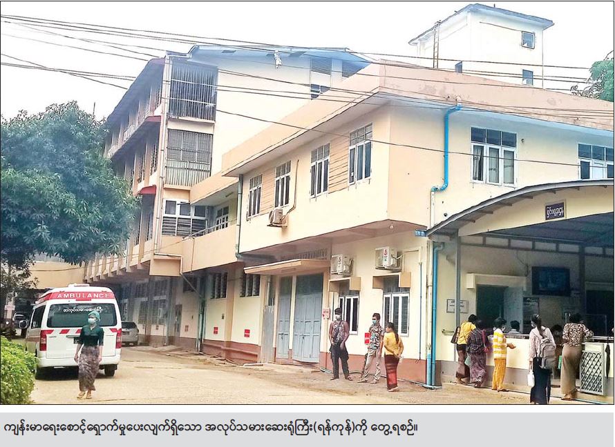 အလုပ်သမား ဆေးရုံကြီး (ရန်ကုန်)တွင် အတွင်းလူနာအဖြစ် ဆေးရုံ တက်ရောက်ကုသခွင့်ကို ဖေဖော်ဝါရီ ၈ ရက်မှစတင်ကာ ယာယီပိတ်ထားခဲ့ပြီး ယခုမေ ၂၄ ရက်မှ စတင်ကာ ပြန်လည် လက်ခံကုသပေးခဲ့ခြင်း ဖြစ်သည်။ ယင်းသို့ ပြန်လည်လက်ခံရာတွင် အကြီးစား ခွဲစိတ်မှုနှင့် သားဖွားမီးယပ် ဌာနများမှအပ ကျန်အထွေထွေရောဂါ များကို ကြည့်ရှု စမ်းသပ်ပေးလျက်ရှိပြီး ဆေးကုသဆောင်ကိုလည်း တစ်ရက်မှ ရပ်နားထားခြင်းမရှိဘဲ ဝန်ဆောင်မှုပေး လျက်ရှိသည်။ နာတာရှည် ကျောက်ကပ် ဆေးလူနာ၊ ပြည်သူ့ဆေးရုံကြီးများတွင် အထူးကုဆရာဝန်ကြီးများနှင့် ကုသနေသော လူနာများကိုလည်း ဆေးအဆက်မပြတ် ထောက်ပံ့ပေးလျက်ရှိကြောင်း သိရသည်။ အလုပ်သမားဆေးရုံကြီး(ရန်ကုန်)တွင် ယခင် ဖေဖော်ဝါရီလ မတိုင်ခင်က အထူးကု ဆရာဝန်ကြီး များ အပါအဝင် လက်ထောက်ဆရာဝန်များဖြင့် နေ့စဉ် အတတ်နိုင်ဆုံး ကျန်းမာရေးဝန်ဆောင်မှု ပေးလျက်ရှိသော်လည်း ယခုအခါ ဆေးရုံအုပ်ကြီး၊ အထူးကုဆရာဝန်ကြီးနှင့် လက်ထောက် ဆရာဝန်များအပါအဝင် ၅၄ ရာခိုင်နှုန်းနှင့် အမှုထမ်း ၆ဝ ရာခိုင်နှုန်းတို့က နေ့စဉ် ဝန်ဆောင်မှု ပေးလျက်ရှိသည်။ ယခုအခါ အလုပ်သမားဆေးရုံကြီး (ရန်ကုန်) ပြင်ပလူနာဌာနတွင် အပတ်စဉ် တနင်္လာ၊ ဗုဒ္ဓဟူးနှင့်သောကြာနေ့များတွင် မျက်စိနှင့် အထွေထွေရောဂါများကို လည်းကောင်း၊ တနင်္လာ၊ ဗုဒ္ဓဟူးနှင့် အင်္ဂါနေ့များတွင် နား၊ နှာခေါင်း၊ လည်ချောင်းရောဂါများကို လည်းကောင်း၊ ဗုဒ္ဓဟူးနှင့်အင်္ဂါနှင့် ကြာသပတေးနေ့များတွင် အရိုးနှင့်အကြောရောဂါများကို စမ်းသပ်ကုသပေး လျက်ရှိသည်။ ဆေးပေးရာတွင်လည်း ရုံးဖွင့်ရက်များ၌ နံနက် ၉ နာရီမှ ညနေ ၄ နာရီအထိ ထုတ်ပေးလျက် ရှိသည်။ ယင်းသို့ အလုပ်သမား ဝေဒနာရှင် များအား ဆေးထောက်ပံ့ပေးရာတွင် ရန်ကုန်မြို့တွင်း နေထိုင်သူများကို တစ်လတစ်ကြိမ်နှင့် ခရီးအကွာအဝေးပေါ် မူတည်ကာ နှစ်လတစ်ကြိမ်နှင့် သုံးလတစ်ကြိမ် ထုတ်ပေးလျက်ရှိကြောင်း သိရသည်။ အလုပ်သမားဆေးရုံကြီး (ရန်ကုန်)သည် ၁၉၆၄ ခုနှစ်တွင် စတင်ဖွင့်လှစ်ခဲ့ပြီး မြန်မာနိုင်ငံ၏ အကြီးဆုံးသော အလုပ်သမားဆေးရုံကြီးဖြစ်ကာ အလုပ်သမားဆေးရုံ (မန္တလေး)နှင့် အလုပ် သမားဆေးရုံ(ထန်းတပင်)တို့ထက် အစောကျသော ဆေးရုံကြီး ဖြစ်သည်။ ယခုအခါတွင် ခုတင် (၂၅၀)ဆံ့ ဆေးရုံကြီးအဖြစ် ရပ်တည်လျက်ရှိပြီး နိုင်ငံတစ်ဝန်း စက်ရုံ၊ အလုပ်ရုံများနှင့် အစိုးရဝန်ထမ်းများ၏ ကျန်းမာရေးပိုင်းဆိုင်ရာ မှီခိုအားထား ပြုနေရသော ဆေးရုံကြီးတစ်ရုံပင် ဖြစ်သည်။
