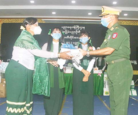 ဆက်လက်၍ တိုင်းမှူးက အခြေခံပညာကျောင်းသုံး ပုံနှိပ်စာအုပ်များအားပေးအပ်ရာ ခရိုင် ပညာရေးမှူး ဒေါ်သန်းသန်းဦးက လည်းကောင်း၊ ဒုတိယညွှန်ကြားရေးမှူးချုပ်က ကျောင်းသုံး ဗလာစာအုပ်များနှင့် ခဲတံများအား ပေးအပ်ရာ ကျောင်းသား/ ကျောင်းသူများကိုယ်စား ကျောင်းသား/ကျောင်းသူ တစ်ဦးစီက လည်းကောင်း အသီးသီး လက်ခံရယူကြသည်။