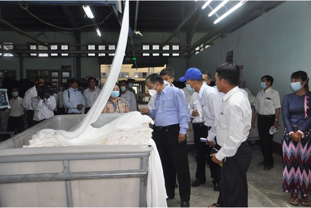 တင်ပြချက်များနှင့် စပ်လျဉ်း၍ ပြည်ထောင်စုဝန်ကြီးက ရပ်နားထားသည့် စက်ရုံများအား ပြန်လည် လည်ပတ်နိုင်ရေးအတွက် အဆင်သင့်ဖြစ်အောင် ပြင်ဆင်ထားရမည်ဖြစ်ကြောင်း၊ စက်မှုကဏ္ဍ ဖွံ့ဖြိုးတိုးတက်မှသာ နိုင်ငံတော်ဖွံ့ဖြိုးတိုးတက်မည်ဖြစ်ကြောင်း၊ စက်မှုကဏ္ဍ ဖွံ့ဖြိုးတိုးတက်ရေးအတွက် စက်မှုလုပ်ငန်းများတွင် ရင်းနှီးလုပ်ကိုင်နေသူများကိုလည်း အားပေးမြှင့်တင်ပေး ရမည်ဖြစ်ကြောင်း၊ ပြည်တွင်းရှိစက်ရုံများ ကုန်ထုတ်လုပ်မှုလုပ်ငန်းများ ဆောင်ရွက်ခြင်းဖြင့် ပြည်ပသွင်းကုန်များကို အစားထိုး နိုင်မည်ဖြစ်ကြောင်း၊ ရပ်နားထားသောစက်ရုံများ ပြန်လည်လည်ပတ်နိုင်ရေးအတွက် ဝန်ထမ်းများအားလုံး ပူးပေါင်းဆောင်ရွက်ကြရမည်ဖြစ်ကြောင်း မှာကြားပြီး စက်ရုံအတွင်း လှည့်လည်ကြည့်ရှုစစ်ဆေးသည်။