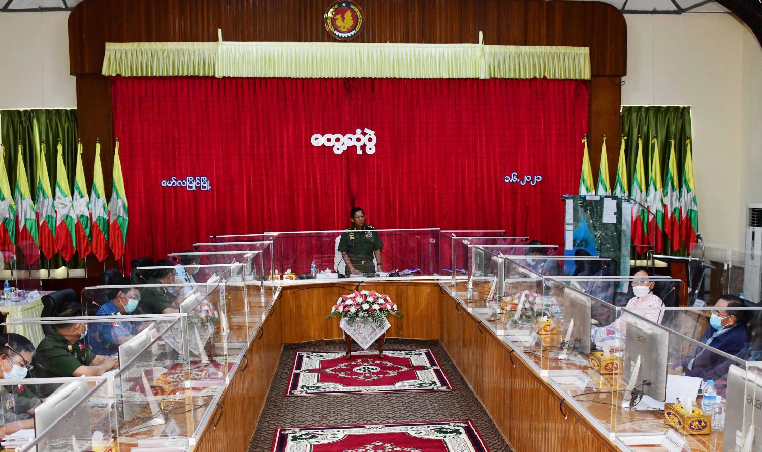 အဆိုပါတွေ့ဆုံပွဲသို့ နိုင်ငံတော်စီမံအုပ်ချုပ်ရေးကောင်စီဥက္ကဋ္ဌ၊ တပ်မတော် ကာကွယ်ရေးဦးစီးချုပ်နှင့်အတူ ကောင်စီဝင်များဖြစ်ကြသည့် ဗိုလ်ချုပ်ကြီး တင်အောင်စန်း၊ ဗိုလ်ချုပ်ကြီး မောင်မောင်ကျော်၊ ဒုတိယဗိုလ်ချုပ်ကြီး မိုးမြင့်ထွန်း၊ မန်းငြိမ်းမောင်၊ ဒေါက်တာ ဗညားအောင်မိုး၊ ကောင်စီတွဲဖက်အတွင်းရေးမှူး ဒုတိယဗိုလ်ချုပ်ကြီး ရဲဝင်းဦး၊ ပြည်ထောင်စုဝန်ကြီးများဖြစ်ကြသည့် ဒေါက်တာ ညွန့်ဖေ၊ ဒေါက်တာ သက်ခိုင်ဝင်း၊ ဦးရွှေလေး၊ ကာကွယ်ရေးဦးစီးချုပ်(ရေ) ဗိုလ်ချုပ်ကြီး မိုးအောင်၊ ကာကွယ်ရေးဦးစီးချုပ်ရုံးမှ တပ်မတော်အရာရှိကြီးများ၊ မွန်ပြည်နယ်စီမံအုပ်ချုပ်ရေး ကောင်စီဥက္ကဋ္ဌ ဦးဇော်ရဲထွန်း၊ အရှေ့တောင်တိုင်းစစ်ဌာနချုပ် တိုင်းမှူး ဗိုလ်ချုပ် ကိုကိုမောင်၊ တိုင်းဒေသကြီးစီမံ အုပ်ချုပ်ရေးကောင်စီအဖွဲ့ဝင်များနှင့် ဌာနဆိုင်ရာ တာဝန်ရှိများ တက်ရောက်ကြသည်။