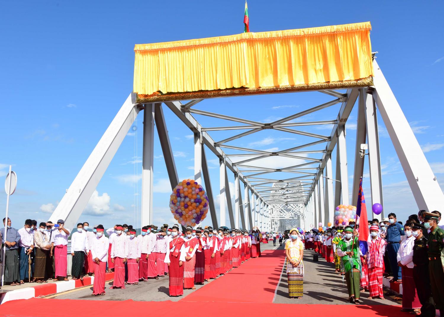 ဆက်လက်၍ နိုင်ငံတော်စီမံအုပ်ချုပ်ရေးကောင်စီဥက္ကဋ္ဌ၊ တပ်မတော်ကာကွယ် ရေးဦးစီးချုပ်နှင့် အဖွဲ့ဝင်များသည် တံတားကြီးပေါ်မှ ဖြတ်သန်းကြည့်ရှုစစ်ဆေးကြပြီး တံတားကြီးအား ရေရှည်တည်တံ့ ခိုင်မြဲအောင် ထိန်းသိမ်းစောင့်ရှောက်ရန် လိုအပ်သည်များကို မှာကြားသည်။ ထို့နောက် တက်ရောက် လာကြသည့် ဒေသခံတိုင်းရင်းသား ပြည်သူများအား ရင်းရင်းနှီးနှီးလိုက်လံနှုတ်ဆက်၍ အခမ်းအနားမှ ပြန်လည်ထွက်ခွာရာ ဒေသခံ တိုင်းရင်းသားပြည်သူများက ရိုးရာအကအလှများဖြင့် ခင်မင်ရင်းနှီးစွာ နှုတ်ဆက်ခဲ့ကြကြောင်း သတင်းရရှိသည်။