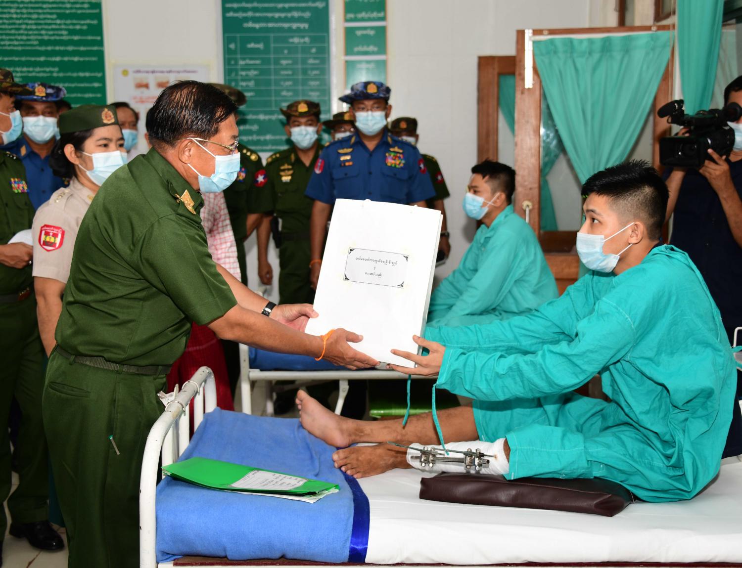 ထို့ပြင် နိုင်ငံတော်စီမံအုပ်ချုပ်ရေးကောင်စီဥက္ကဋ္ဌ တပ်မတော်ကာကွယ်ရေး ဦးစီးချုပ်၊ ဇနီးနှင့် အဖွဲ့ဝင်များသည် မော်လမြိုင်မြို့ရှိ နယ်မြေခံတပ်မတော်ဆေးရုံသို့ သွား ရောက်ကြည့်ရှုစစ်ဆေးပြီး ဆေးရုံတက်ရောက် ကုသမှုခံယူလျက်ရှိသည့် အရာရှိ၊ စစ်သည်၊ မိသားစုများနှင့် ဒေသခံပြည်သူများအား ရင်းရင်းနှီးနှီး အားပေးစကားပြောကြားပြီး စားသောက်ဖွယ်ရာများ ပေးအပ်သည်။ ပြည်နယ်ပြည်သူ့ဆေးရုံကြီးတွင် ကျန်းမာရေးဝန်ထမ်းများ လုပ်ငန်းတာဝန်ပျက်ကွက်မှုများကြောင့် တပ်မတော်ဆေးရုံ၌ ဖေဖော်ဝါရီလမှ ယနေ့အထိ ရိုးရိုးမီးဖွားလူနာ ၅၄၀ ဦး၊ ခွဲစိတ်မီးဖွားလူနာ ၃၀၉ ဦး၊ အကြီးစားခွဲစိတ်လူနာ ၄၈၅ ဦး၊ ပုံမှန်ခွဲစိတ်လူနာ ၄၉၆ ဦးအပါအဝင် စုစုပေါင်း ဆေးရုံတက်အရပ်သားလူနာ ၄၂၆၅ ဦးကို လက်ခံကုသပေးနိုင်ခဲ့ကြောင်းနှင့် လက်ရှိတွင်လည်း အရပ်သားလူနာ ၅၂ ဦးကို လက်ခံကုသပေးလျက်ရှိကြောင်း သတင်းရရှိ သည်။