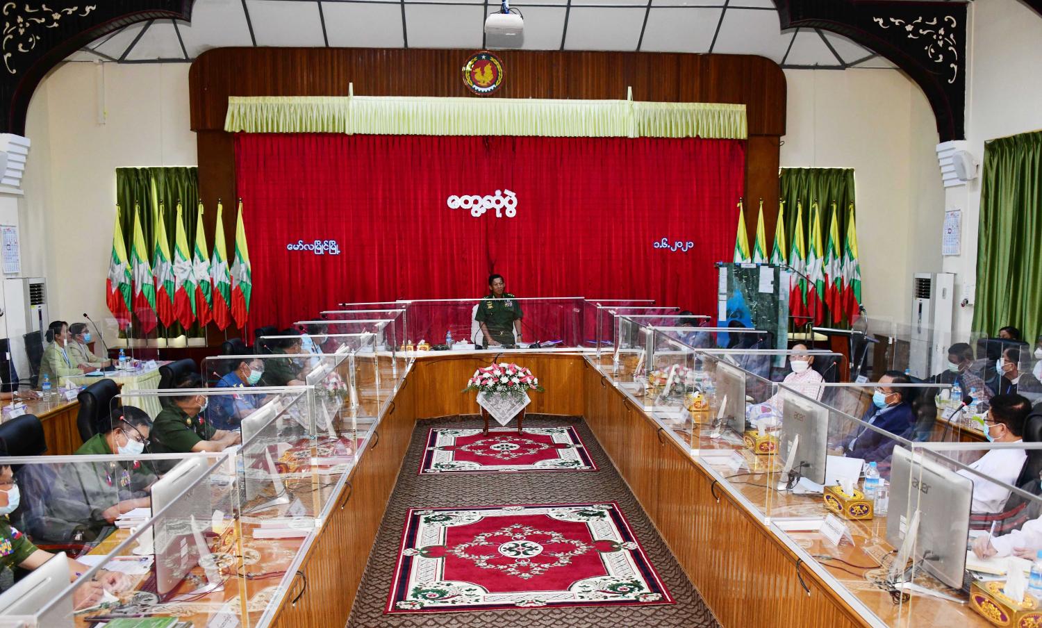 ထိုကဲ့သို့ လုပ်ဆောင်မှုများရှိနေသည်ဖြစ်သော်လည်း မိမိတို့တိုင်းပြည်တွင် လုပ်ဆောင်ရန် များစွာ ရှိနေသောကြောင့် တတ်နိုင်သရွေ့ ကြိုးပမ်းလုပ်ဆောင်ကြရမည် ဖြစ်ကြောင်း၊ လုပ်ငန်းတာဝန်ပျက်ကွက် လျက်ရှိသည့် နိုင်ငံ့ဝန်ထမ်းများ၏ နေရာတွင် အစားထိုးခန့်ထားနိုင်ရေး လိုအပ်သည်များ လုပ်ဆောင်လျက် ရှိကြောင်း၊ ယနေ့ ဇွန် ၁ ရက်တွင် အခြေခံပညာကျောင်းများ ပြန်လည်ဖွင့်လှစ်နိုင်ရေးစီစဉ်ဆောင်ရွက်ခဲ့ပြီး ယနေ့တွင် ကျောင်းသား၊ ကျောင်းသူများ ကျောင်းစတင်တက်ရောက်လျက်ရှိပြီ ဖြစ်ကြောင်း၊ အရေးပေါ်ကာလတာဝန်များ ပြီးမြောက်အောင် ဆောင်ရွက်ပြီးပါက လွတ်လပ်ပြီး တရားမျှတသည့် ရွေးကောက်ပွဲကို ပြန်လည်ပြုလုပ်ကာ တာဝန်လွှဲ ပြောင်းမှုများ ဆက်လက်လုပ်ဆောင်သွားမည် ဖြစ်ကြောင်း။