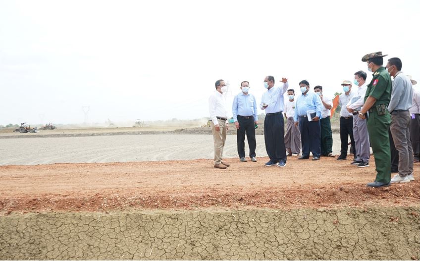 စိုက်ပျိုးရေး၊ မွေးမြူရေးနှင့်ဆည်မြောင်းဝန်ကြီးဌာန ပြည်ထောင်စုဝန်ကြီး ဦးတင်ထွဋ်ဦး သည် မေ ၂၉ ရက် နံနက်ပိုင်းတွင် မကွေးတိုင်းဒေသကြီး မြို့သစ်မြို့နယ် စက်မှုလယ်ယာစနစ် ကျလယ်ယာမြေဖော်ထုတ်ရေး လုပ်ငန်းခွင်သို့ ကြည့်ရှုစစ်ဆေးသည်။