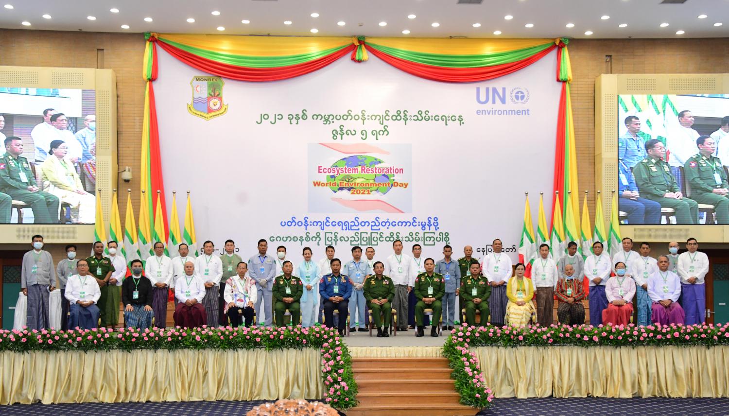 ၂၀၂၀ ပြည့်နှစ်သည် COVID-19 ကမ္ဘာ့ကပ်ရောဂါ အပါအဝင် ဘေးအန္တရာယ် များစွာကို ရင်ဆိုင်ခဲ့ရသည့် နှစ်တစ်နှစ်ဖြစ်ခဲ့သကဲ့သို့ ယခုနှစ်တွင်လည်း COVID-19 ကပ်ရောဂါ ဆက်လက်ဖြစ်ပွားနေမှုနှင့်အတူ တစ်စထက်တစ်စ ယိုယွင်းပျက်စီးလာ သည့် သဘာဝသယံဇာတ၊ ပတ်ဝန်းကျင်ညစ်ညမ်းမှုနှင့် ရာသီဥတုဖောက်ပြန်မှု ဆိုင်ရာ ပြဿနာများကို ဖြေရှင်းနိုင်ရေးအတွက် အဓိကကျသည့် သဘာဝဂေဟစနစ် ပြန်လည် ထိန်းသိမ်းခြင်းကို မိမိတို့အားလုံး အဓိကဦးစားပေး အရေးကြီးလုပ်ငန်းအနေဖြင့် အထူးအလေးထား အကောင်အထည်ဖော် ဆောင်ရွက်နေကြရသည် ဖြစ်ပါကြောင်း။