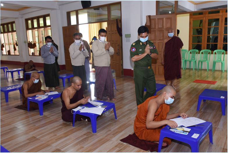 နေပြည်တော်၊ ဇွန် - ၅ ရှမ်းပြည်နယ်(အရှေ့ပိုင်း)၊ ကျိုင်းတုံမြို့၊ ရခိုင်ပြည်နယ်၊ စစ်တွေမြို့နှင့် မန္တလေး တိုင်းဒေသကြီး၊ မန္တလေးမြို့တို့၌ သာသနာရေးဦးစီးဌာနမှ ကျင်းပလျက်ရှိသော အစိုးရဓမ္မာစရိယစာမေးပွဲဖြေဆိုနေကြသည့် သံဃာတော်များ၊ သာသနာ့နွယ်ဝင် သီလရှင်များနှင့် စာမေးပွဲကြီးကြပ်ဆရာတော်ကြီးများအား ဇွန် ၄ ရက်နှင့် ယနေ့ တို့တွင် သက်ဆိုင်ရာ တိုင်းစစ်ဌာနချုပ်များမှ တိုင်းမှူးများ၊ သာသနာရေးနှင့် ယဉ်ကျေးမှုဝန်ကြီးဌာနမှ တာဝန်ရှိသူများက သွားရောက်ဖူးမြော်ကြည်ညိုကြကာ နဝကမ္မအလှူငွေနှင့် လှူဖွယ်ပစ္စည်းများ ဆက်ကပ်လှူဒါန်းပြီး နေ့ဆွမ်းများ ဆက်ကပ် လှူဒါန်းခဲ့ကြကြောင်း သတင်းရရှိသည်။ သတင်းစဉ်