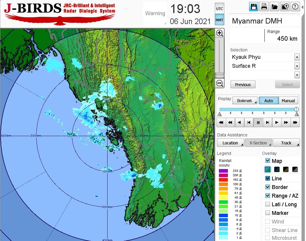 ဘင်္ဂလားပင်လယ်အော်အခြေအနေ။ ကပ္ပလီပင်လယ်ပြင်၊ ဘင်္ဂလားပင်လယ်အော်တောင်ပိုင်း၊ အရှေ့အလယ်ပိုင်းနှင့်အရှေ့မြောက်ပိုင်းတို့တွင် မုတ်သုံလေ အားအသင့်အတင့်ရှိနေပြီး၊ ကျန်ဘင်္ဂလားပင်လယ်အော်တွင် တိမ်အနည်းငယ်မှ တိမ်အသင့်အတင့် ဖြစ်ထွန်းနေပါသည်။