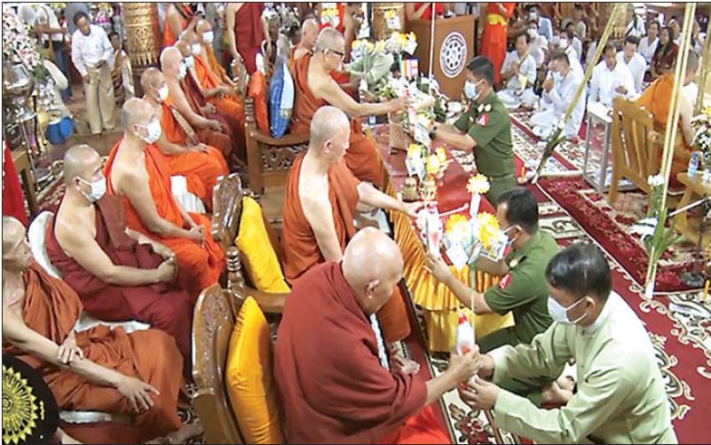 ၎င်းနောက် တိုင်းမှူးနှင့် အလှူရှင်များက သံဃာတော်များအား လှူဖွယ်ပစ္စည်းများနှင့် ဝတ္ထုငွေများကို ဆက်ကပ်လှူဒါန်းကြပြီး ဟိုခုံကျောင်းပရိယတိ္တစာသင်တိုက် ဆရာတော် ဘဒ္ဒန္တဇောတိကထံမှ အနုမောဒနာတရားနာယူကာ သံဃာတော်များအား နေ့ဆွမ်းဆက်ကပ် လှူဒါန်းခဲ့ကြောင်း သတင်းရရှိသည်။