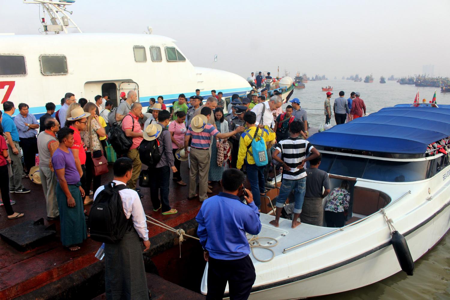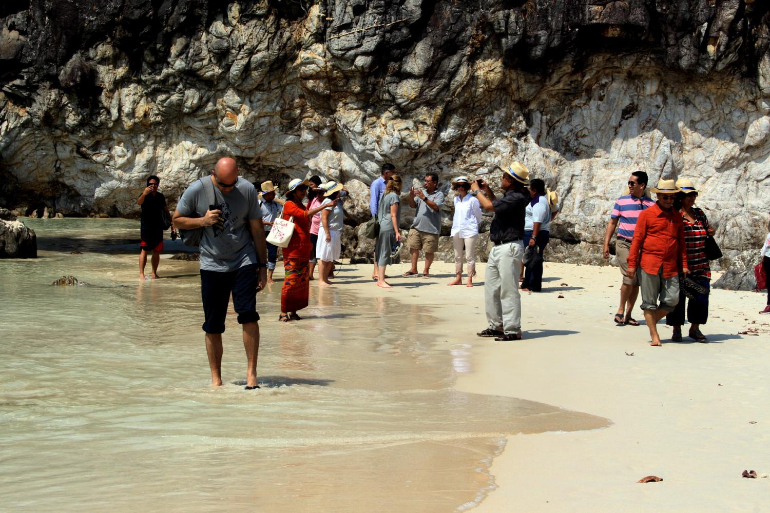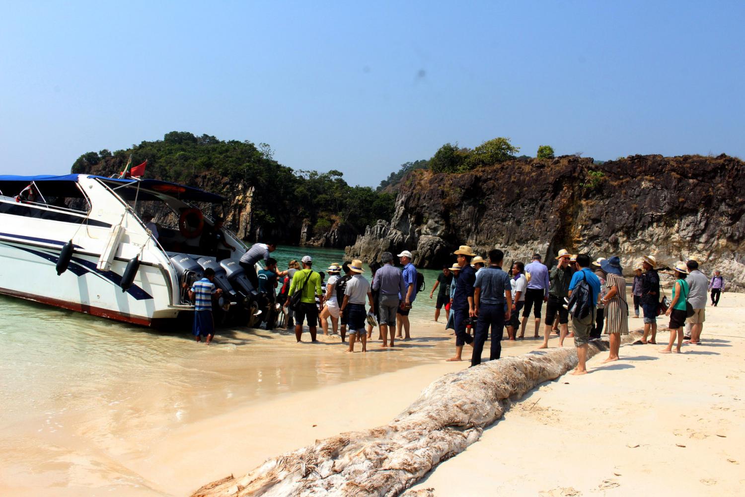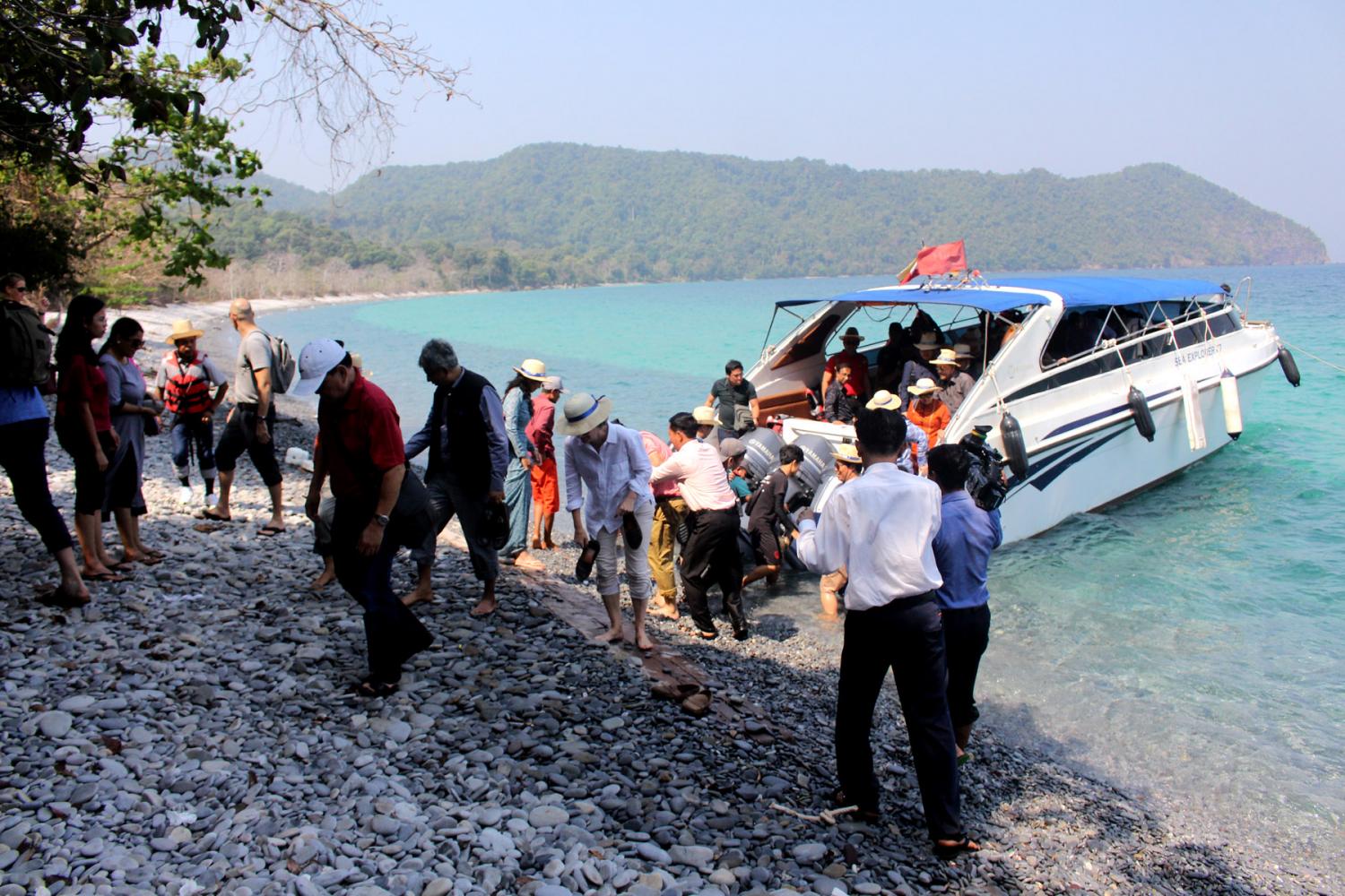 တနင်္သာရီတိုင်းဒေသကြီး မြိတ်မြို့၌ လေ့လာရေးခရီးစဉ် ရောက်ရှိနေကြသော အပြည်ပြည်ဆိုင်ရာ ပူးပေါင်းဆောင်ရွက်ရေး ဝန်ကြီးဌာန ပြည်ထောင်စုဝန်ကြီး ဦးကျော်တင် ဦးဆောင်သည့် မြန်မာနိုင်ငံဆိုင်ရာ နိုင်ငံခြားသံရုံးများမှ သံရုံးအကြီးအကဲ များနှင့် ၎င်းတို့၏ဇနီး/ခင်ပွန်းများ ပါဝင်သော သံတမန်လေ့လာရေးအဖွဲ့သည် ယနေ့ နံနက်ပိုင်းတွင် အမြန်ရေယာဉ်ဖြင့် မြိတ်ကျွန်းစုရှိ ကျွန်းများအား သွားရောက်ကြည့်ရှု လေ့လာကြသည်။