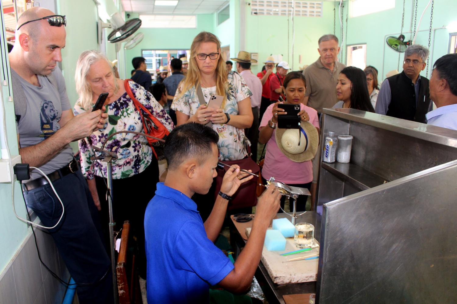 ရှေးဦးစွာ သံတမန်လေ့လာရေးအဖွဲ့သည် သယောသဏ္ဍန်ကြီးကျွန်းရှိ မြန်မာ အတ္တလန်တစ်ကုမ္ပဏီ ပုလဲမွေးမြူရေးစခန်းသို့ ရောက်ရှိရာ ပုလဲမွေးမြူရေးစခန်း တာဝန်ခံ ဦးစောထဲလာ က ပုလဲမွေးမြူရေးလုပ်ငန်းများနှင့်ပတ်သက်၍ ရှင်းလင်းတင်ပြပြီး သံတမန်လေ့လာရေးအဖွဲ့သည် မုတ်ကောင်သားပေါက်ခန်းနှင့် ဝတ်ဆံသွင်း ခန်းမတွင် မုတ်ကောင်အတွင်း ဝတ်ဆံသွင်းနေမှုအား ကြည့်ရှုလေ့လာကြသည်။