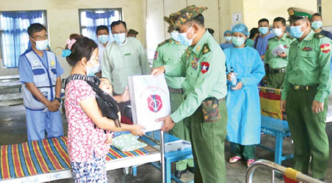 ယနေ့နံနက်ပိုင်းတွင် ဒုတိယဗိုလ်ချုပ်ကြီး ဖုန်းမြတ်နှင့် အဖွဲ့ဝင်များသည် ကလေးမြို့ရှိ အထွေထွေရောဂါ ကုဆေးရုံသို့ သွားရောက်၍ ဆရာဝန်များ၊ သူနာပြုများကို တွေ့ဆုံအမှာစကား ပြောကြားပြီး ဆေးရုံတက်လူနာများအတွက် အာဟာရဖြည့်စားသောက်ဖွယ်ရာများ ပေးအပ်သည်။ (ပုံ) ယင်းနောက် တပ်မတော်ဆေးဝန်ထမ်း ညွှန်ကြားရေးမှူးရုံးမှ အရေးပေါ် COVID-19 ရောဂါ ဓာတ်ခွဲအတည်ပြုနိုင်ရေးအတွက် ဓာတ်ခွဲယာဉ် ရောက်ရှိအသုံးပြုနေမှုများကို သွားရောက်ကြည့်ရှုပြီး COVID-19 ရောဂါ အရေးပေါ်ကုသမှု ဆောင်ရွက် နိုင်ရန် ၂၅ ခုတင်ဆံ့ တိုင်းရင်းသားဆေးရုံတွင် ပြင်ဆင်ထားရှိမှုနှင့်စက်ပစ္စည်းများ စုဆောင်းထားရှိ မှုကို လှည့်လည်ကြည့်ရှုစစ်ဆေးသည်။ တမူးမြို့နယ်အတွင်းရှိ ဒေသခံပြည်သူများကို တပ်မတော်ဆေးကု သရေးအဖွဲ့မှ COVID-19 ရောဂါ နှင့်ပတ်သက်၍ လိုအပ်သည့် ကျန်းမာရေးစောင့် ရှောက်မှုလုပ်ငန်းများ ဆောင်ရွက်သွားမည်ဖြစ်သည်။