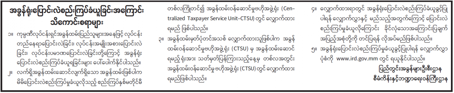 အခွန်ပြောင်းလဲ စည်းကြပ်ခံယူခြင်းအကြောင်း သိကောင်းစရာများ