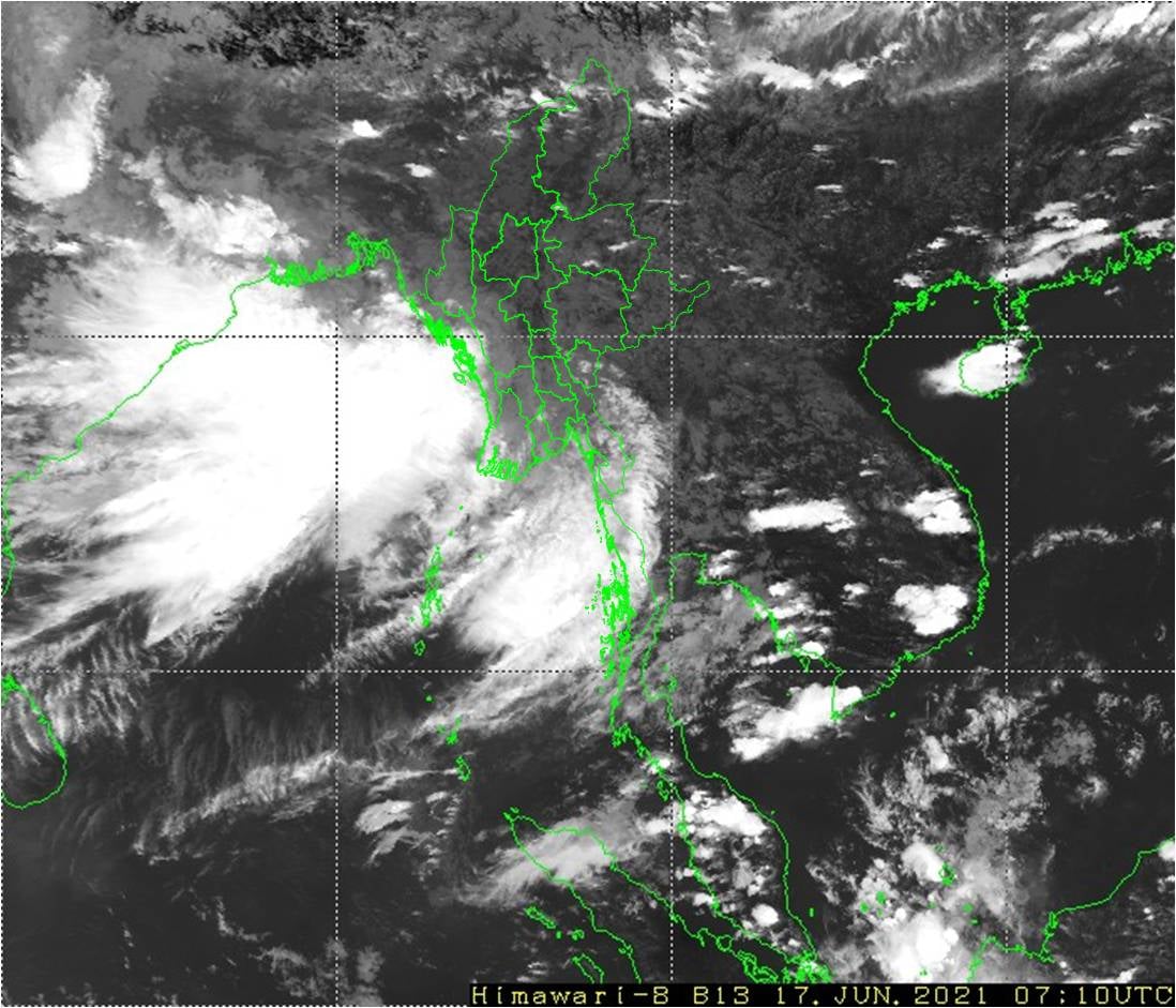 ယနေ့နံနက်(၀၉:၃၀)နာရီအချိန်ထိမိုးလေဝသတိုင်းထွာချက်အကျဉ်းချုပ်။လွန်ခဲ့သော(၂၄)နာရီအတွင်းကစစ်ကိုင်းတိုင်းဒေသကြီးအောက်ပိုင်း၊ မန္တလေးတိုင်းဒေသကြီး၊ မကွေးတိုင်းဒေသကြီး၊ ကချင်ပြည်နယ်နှင့် ရှမ်းပြည်နယ်(အရှေ့ပိုင်း)တို့တွင် နေရာကျဲကျဲနှင့် ကျန်တိုင်းဒေသကြီးနှင့် ပြည်နယ်တို့တွင် နေရာအနှံ့အပြား မိုးထစ်ချုန်းရွာခဲ့ပြီး၊ ရန်ကုန်တိုင်းဒေသကြီး၊ ဧရာဝတီတိုင်းဒေသကြီး၊ ရခိုင်ပြည်နယ်၊ ကရင်ပြည်နယ်နှင့် မွန်ပြည်နယ်တို့တွင် ဒေသအလိုက်နှင့် နေပြည်တော်၊ ပဲခူးတိုင်းဒေသကြီးနှင့် ကချင်ပြည်နယ်တို့တွင် နေရာကွက်၍ မိုးကြီးခဲ့ပါသည်။ မှတ်သားဖွယ်ရာ မိုးရေချိန်များမှာ သံတွဲမြို့တွင် (၇.၆၈)လက်မ၊ ကျောက်ဖြူမြို့တွင် (၅.၆၃)လက်မ၊ ပိုင်ကျုံမြို့တွင် (၅.၄၉)လက်မ၊ မာန်အောင်မြို့တွင် (၅.၃၅)လက်မ၊ တောင်ကုတ်မြို့တွင် (၄.၉၂)လက်မ၊ မော်လမြိုင်မြို့တွင် (၄.၀၂)လက်မ၊ ကွမ်းခြံကုန်းမြို့တွင် (၃.၈၂)လက်မ၊ ဘီးလင်းမြို့တွင် (၃.၆၂)လက်မ၊ ရှမ်းရွာသစ်မြို့တွင် (၃.၄၆)လက်မ၊ ပူတာအိုမြို့တွင် (၃.၄၃)လက်မ၊ ပဲခူးမြို့၊ မြောင်းမြမြို့၊ မုဒုံမြို့နှင့် ကျိုက္ခမီမြို့တို့တွင် (၃.၃၈)လက်မစီ၊ ရန်ကုန်(မြို့လယ်)တွင် (၃.၃၁)လက်မ၊ ဟိုင်းကြီးကျွန်းမြို့တွင် (၃.၂၇)လက်မ၊ ပုသိမ်မြို့တွင် (၃.၂၃)လက်မနှင့် ဂွမြို့တွင် (၃.၁၉)လက်မ တို့ဖြစ်ကြပါသည်။