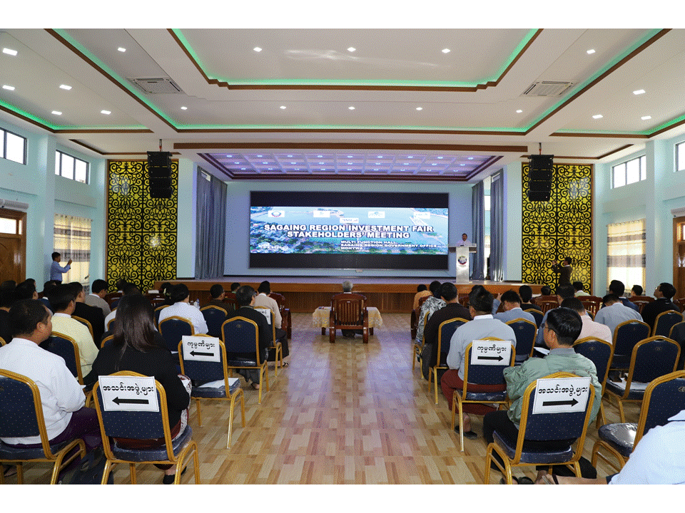 စစ်ကိုင်းတိုင်းဒေသကြီး ရင်းနှီးမြှုပ်နှံမှုပြပွဲ အောင်မြင်စွာကျင်းပနိုင်ရေးအတွက် Stakeholders’ Meeting တွင် အကြိုကျင်းပသော အကျိုးသက်ဆိုင်သူများ အစည်းအဝေးကို ယမန်နေ့ နံနက် (၉) နာရီခွဲက စစ်ကိုင်းတိုင်းဒေသကြီး အစိုးရအဖွဲ့ရုံး ဘက်စုံသုံးခန်းမ၌ ကျင်းပသည်။