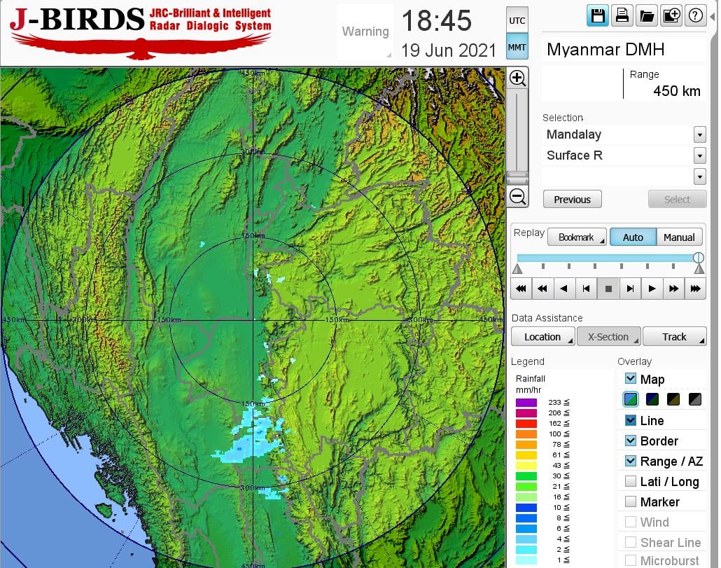မနက်ဖြန်မွန်းတည့်ချိန်အထိခန့်မှန်းချက်။တနင်္သာရီတိုင်းဒေသကြီး၊ ရှမ်းပြည်နယ်(တောင်ပိုင်းနှင့် အရှေ့ပိုင်း)နှင့် ကယားပြည်နယ်တို့တွင် နေရာကျဲကျဲ၊ စစ်ကိုင်းတိုင်းဒေသကြီး၊ မန္တလေးတိုင်းဒေသကြီး၊ မကွေးတိုင်းဒေသကြီး၊ကချင်ပြည်နယ်၊ ရှမ်းပြည်နယ်(မြောက်ပိုင်း)၊ ကရင်ပြည်နယ်နှင့် မွန်ပြည်နယ်တို့တွင် နေရာစိပ်စိပ်နှင့် ကျန်တိုင်းဒေသကြီးနှင့် ပြည်နယ်တို့တွင် နေရာအနှံ့အပြား မိုးထစ်ချုန်းရွာပြီး၊ ရခိုင်ပြည်နယ်တွင် ဒေသအလိုက်နှင့် ချင်း ပြည်နယ်တွင် နေရာကွက်၍ မိုးကြီးနိုင်ပါသည်။ ရွာရန်ရာနှုန်းပြည့် ဖြစ်ပါသည်။