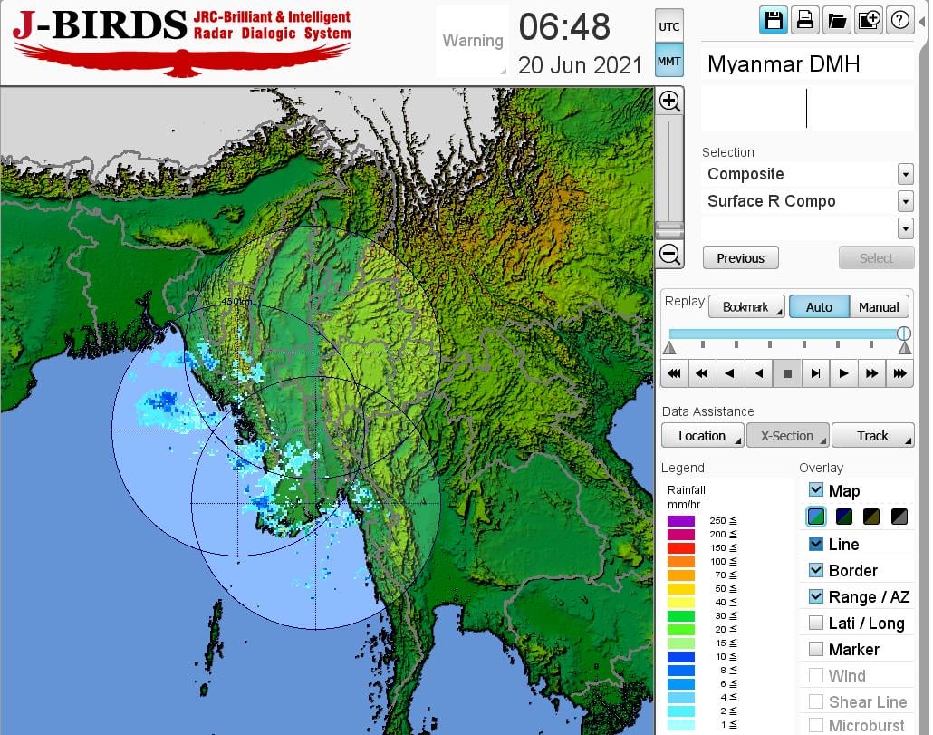 ဘင်္ဂလားပင်လယ်အော်အခြေအနေ။ကပ္ပလီပင်လယ်ပြင်နှင့် ဘင်္ဂလားပင်လယ်အော်အရှေ့တောင်ပိုင်းတို့ တွင် မုတ်သုံလေအားနည်းနေပြီး၊ ကျန်ဘင်္ဂလားပင်လယ်အော်တွင် မုတ်သုံလေ အားအသင့်အတင့်မှ အားကောင်းနေပါသည်။