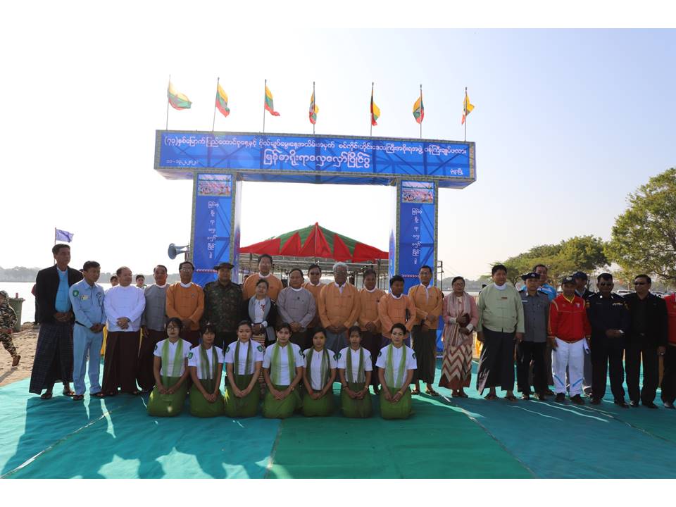 ၂၀၂၀ ပြည့်နှစ် (၇၃) နှစ်မြောက် ပြည်ထောင်စုနေ့နှင့် ဗိုလ်ချုပ်မွေးနေ့ အထိမ်းအမှတ် စစ်ကိုင်းတိုင်းဒေသကြီး အစိုးရအဖွဲ့ ဝန်ကြီးချုပ်ဖလား မြန်မာ့ရိုးရာလှေပြိုင်ပွဲ ဖွင့်ပွဲအခမ်းအနား မုံရွာမြို့ ကန်သာယာ ကျောက်တိုင်ကျွန်းတွင် စည်ကားသိုက်မြိုက်စွာကျင်းပ