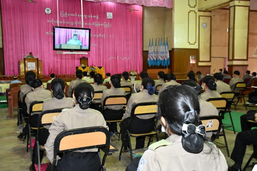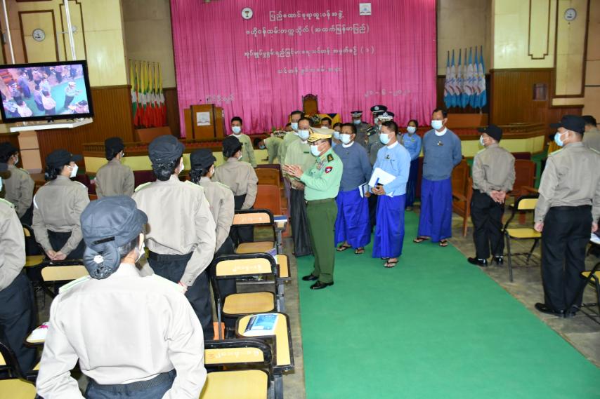 တွေ့ဆုံစဉ် ပြည်ထောင်စုဝန်ကြီးက နိုင်ငံတော်စီမံအုပ်ချုပ်ရေးကောင်စီက ရှေ့လုပ်ငန်းစဉ်များနှင့် ဦးတည်ချက်များ ချမှတ်ကာ လုပ်ငန်းဆောင်ရွက်နေမှုများ၊ နိုင်ငံတော်၏ သတ်မှတ်ထားရှိသည့် မူဝါဒနှင့်အညီ အထွေထွေ အုပ်ချုပ်ရေးဦးစီးဌာနမှ သတ်မှတ်အရည် အချင်းနှင့် ကိုက်ညီသူများကို အုပ်ချုပ်မှုစွမ်းရည် မြင့်မားရေးသင်တန်း အမှတ်စဉ်(၁) အနေဖြင့် ယနေ့မှစတင်၍ သင်တန်းဖွင့်လှစ်ခဲ့ခြင်းဖြစ်ကာ သင်တန်းသား/ သင်တန်းသူများကို ကိုယ်တိုင်ကိုယ်ကျ လာရောက်၍ သိသင့်သိထိုက်သည့် ကိစ္စရပ်များကို လာရောက်မှာကြားခြင်း ဖြစ်ပါကြောင်း၊ လတ်တလော နိုင်ငံတကာတွင် ဖြစ်ပျက်နေသော ဖြစ်စဉ်ဖြစ်ရပ်များကို လေ့လာသုံးသပ်ရမည်ဖြစ်ကြောင်း။ နိုင်ငံဝန်ထမ်းများအနေဖြင့် မည်သည့်အစိုးရ တာဝန်ယူသည်ဖြစ်စေ မိမိတို့ဦးစီးဌာန၏ တာဝန်များ၊ မိမိတို့အတွက် ချမှတ်ပေးထားသော လုပ်ငန်းတာဝန်များကို တာဝန်ကျေ ပွန်စွာ ထမ်းရွက်ကြရန်လို အပ်ကြောင်း၊ ဒို့တာဝန်အရေးသုံးပါးကို အမြဲဂရုပြု ကာကွယ်စောင့် ရှောက်ရမည်ဖြစ်ကြောင်း၊ သင်တန်းသားများကို ရုပ်ပိုင်းဆိုင်ရာနှင့် စိတ်ပိုင်းဆိုင်ရာ ကြံ့ခိုင်မှုများ ရှိစေရေးအတွက် သင်တန်းပို့ချလေ့ကျင့်နိုင်ရန် သင်ရိုးဇယား ရေးဆွဲထားပြီး ကာကွယ် ရေးအမြင်များ ရှိစေရေးအတွက် အခြေခံလိုအပ်သည့် စစ်ပညာဘာသာရပ်များကိုပါ ထည့်သွင်း သင်ကြားနိုင်ရေး လျာထား ဆောင်ရွက်ထားရှိပါကြောင်း၊ ပို့ချသည့်ဆရာ/ဆရာမ များ၏ ပို့ချမှုများကို အလေးထား လိုက်နာကြရန်လိုအပ်ကြောင်း၊ နိုင်ငံအတွင်း အထွေထွေ အုပ်ချုပ်ရေးဦးစီး ဌာန၏ လုပ်ငန်းဆောင်ရွက်ရသည့် လုပ်ငန်းစဉ်များအနေဖြင့် လွန်စွာအရေး ကြီးပါကြောင်း၊ နိုင်ငံတော်အတွင်း ဆူပူဆန္ဒပြရာမှ အဆင့်ဆင့် ဆိုးဝါးလာပြီး မင်းမဲ့စရိုက် ဆန်စွာဖြင့် အုပ်ချုပ်ရေး တာဝန်ရှိသူများကို လုပ်ကြံသတ်ဖြတ်ခြင်း၊ အပြစ်မဲ့ပြည်သူများကို အကြောင်းမဲ့သတ်ဖြတ်ခြင်း၊ ရုံး/ဌာနများကို ဗုံးပစ်ခြင်း၊ မီးရှို့ခြင်း စသည်ဖြင့် အကြမ်းဖက် အဖွဲ့အစည်းပုံသဏ္ဍာန်ကဲ့သို့ လုပ်ရပ်များကို ဆိုးရွားစွာ ဆောင်ရွက်လာသည်ကို တွေ့မြင်ရ ကြောင်း၊ လက်ရှိဖြစ်ပွားနေသည့် ဖြစ်စဉ်ဖြစ်ရပ်များကို ပြည်တွင်း/ပြည်ပ သတင်းမီဒီယာများ အနေဖြင့် မီဒီယာကျင့်ဝတ်ကို မျက်ကွယ်ပြုပြီး ကောလာဟလနှင့် သတင်းအမှားများကိုသာ လုပ်ကြံဖြန့်ချိနေသည်ကို (လူမှုကွန်ယက်) များပေါ်တွင် တွေ့မြင်ရမည်ဖြစ်ကြောင်း၊ ဥပမာ အားဖြင့် ရက်ပိုင်းအတွင်း ဖြစ်ပွားခဲ့သည့် ပေါက်မြို့နယ်၊ ကင်းမကျေးရွာကို အကြမ်းဖက် သောင်းကျန်းသူများမှ မီးရှို့ဖျက်ဆီး ခဲ့မှုအခြေအနေကို သိရှိကြမည်ဖြစ်ကြောင်း၊ မိမိတို့ဝန်ကြီးဌာနအနေဖြင့် တရားဥပဒေ စိုးမိုးရေးနှင့် အစ