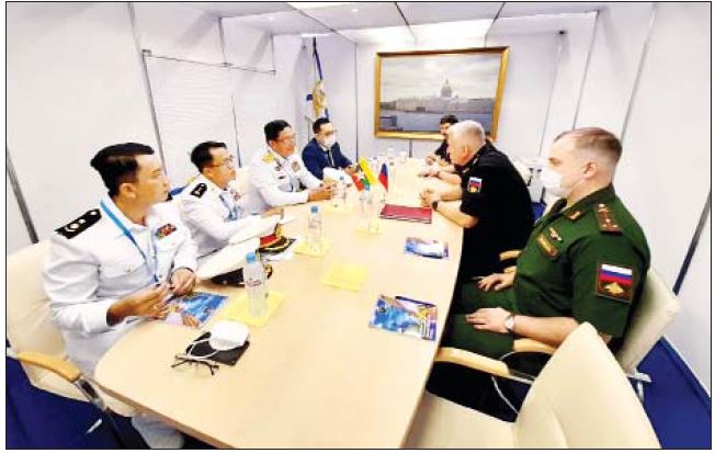 နိုင်ငံတကာရေကြောင်းဆိုင်ရာ ကာကွယ်ရေးပြပွဲ (International Maritime Defence Show (IMDS-2021))ကို ရုရှားဖက်ဒရေးရှင်းနိုင်ငံ Saint Petersburg မြို့၌ ယနေ့နံနက်ပိုင်းတွင် ကျင်းပရာ နိုင်ငံတော်စီမံအုပ်ချုပ်ရေးကောင်စီဥက္ကဋ္ဌ တပ်မတော်ကာကွယ်ရေးဦးစီးချုပ်၏ ရုရှားဖက်ဒရေးရှင်းနိုင်ငံ ခရီးစဉ်တွင် လိုက်ပါလာသည့် ကာကွယ်ရေးဦးစီးချုပ်(ရေ) ဗိုလ်ချုပ်ကြီး မိုးအောင် ဦးဆောင်သည့် မြန်မာ့တပ်မတော်(ရေ)ကိုယ်စား လှယ်အဖွဲ့ ပါဝင် တက်ရောက် ကြသည်။