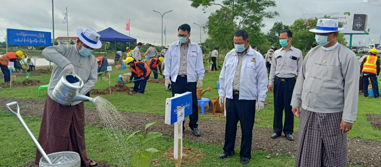ရှေးဦးစွာ ဆောက်လုပ်ရေးဝန်ကြီးဌာန ပြည်ထောင်စုဝန်ကြီး ဦးရွှေလေးက သတ်မှတ် နေရာတွင် ကျွန်းပင်ကိုစိုက်ပျိုးပေးသည်။ ထို့နောက် ဒုတိယဝန်ကြီးဦးမင်းထိန်၊ ပြည်ထောင်စု ဝန်ကြီးရုံး၊ အဆောက်အဦဦးစီးဌာန၊ လမ်းဦးစီးဌာန၊ တံတားဦးစီးဌာန၊ မြို့ပြနှင့်အိမ်ရာ ဖွံ့ဖြိုး ရေး ဦးစီးဌာနနှင့်ကျေးလက်လမ်းဖွံ့ဖြိုးရေးဦးစီးဌာနတို့မှ အမြဲတမ်းအတွင်းဝန်၊ ညွှန်ကြား ရေးမှူးချုပ်များ၊ ဒုတိယအမြဲတမ်းအတွင်းဝန်၊ ဒုတိယညွှန်ကြားရေးမှူးချုပ်များ၊ အင်ဂျင်နီယာ ချုပ်များ၊ ညွှန်ကြား ရေးမှူးများနှင့် တာဝန်ရှိသူများ၊ ဖိတ်ကြား ထားသည့် သယံဇာတနှင့် သဘာဝပတ်ဝန်းကျင် ထိန်းသိမ်းရေးဝန်ကြီးဌာနမှ ညွှန်ကြားရေးမှူးချုပ်နှင့် ဒုတိယညွှန်ကြား ရေးမှူးချုပ်များ၊ ညွှန်ကြားရေးမှူးများ၊ အမြန်လမ်းမကြီး ရဲတပ်ဖွဲ့မှ တပ်ဖွဲ့မှူး၊ ဒုတိယရဲတပ်ဖွဲ့ မှူးနှင့် ရဲဝန်ထမ်းများ၊ ဌာနဆိုင်ရာ ဝန်ထမ်းအားလုံးက သတ်မှတ်နေရာအသီးသီးတွင် ကျွန်းပင် (၂၀၀) နှင့် ပိတောက်ပင် (၁၀၀) ၊ မဲဇလီပင် (၅၀) ၊ စိန်ပန်းပင် (၅၀) စုစုပေါင်း ပျိုးပင်(၄၀၀) ကို စုပေါင်းစိုက်ပျိုးပေးကြသည်။
