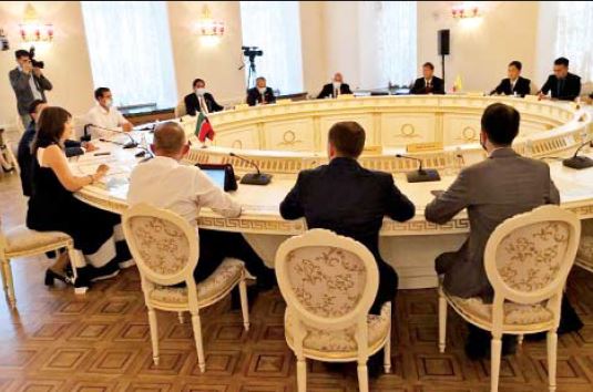 ထို့နောက် နေပြည်တော်ကောင်စီဥက္ကဋ္ဌ၊ မြို့တော်ဝန် ဦးဆောင်သော ကိုယ်စား လှယ်အဖွဲ့သည် ကာဇန်မြို့ ဒုတိယမြို့တော်ဝန်နှင့် ကာဇန်မြို့တော်ခန်းမ၌ တွေ့ဆုံပြီး နေပြည်တော်နှင့် ကာဇန်မြို့အကြား ပူးပေါင်းဆောင်ရွက်ရေးဆိုင်ရာ ကိစ္စရပ်များ၊ ဖွံ့ဖြိုးတိုးတက်ရေးဆိုင်ရာကိစ္စရပ်များ၊ နည်းပညာအကူအညီ များ ပေးအပ်သွားရေး၊ အထူးသဖြင့် ပို့ဆောင်ရေးနှင့် မြို့ပြ ဖွံ့ဖြိုးတိုးတက်ရေးလုပ်ငန်းများတွင် နီးကပ်စွာ ပူးပေါင်းဆောင်ရွက်သွားရေးနှင့် ချစ်ကြည်ရေးနှင့် လေ့လာရေးခရီးစဉ်များ အပြန် အလှန် လည်ပတ်နိုင်ရေး ကိစ္စရပ်များကို ဆွေးနွေးခဲ့ကြကြောင်း သိရသည်။