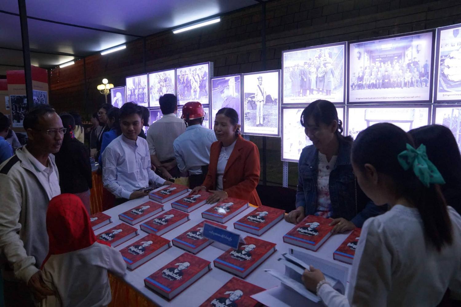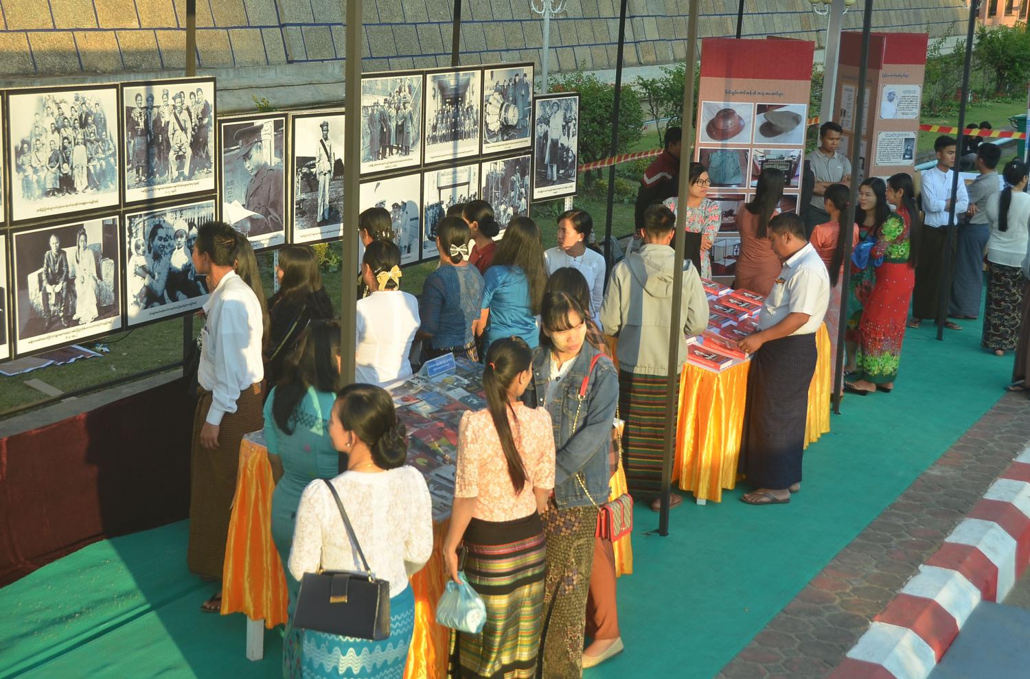 ဗိုလ်ချုပ်အောင်ဆန်း၏ ကျောင်းသားဘဝ၊ ရဲဘော်သုံးကျိပ်နှင့် တပ်မတော်သားဘဝ၊ နိုင်ငံရေးသမားဘဝ၊ မိသားစုဘဝနှင့် နိုင်ငံခြားခရီးစဉ်ဓာတ်ပုံများအပြင် ဗိုလ်ချုပ် အောင်ဆန်း၏ လက်ရေးမူများ၊ မိန့်ခွန်းကောက်နုတ်ချက်များ၊ ဗိုလ်ချုပ်အောင်ဆန်း အကြောင်းရေးသားဖွဲ့ဆိုထားသည့် ကဗျာအပါအဝင် စာအုပ် စာစောင်များကို ပြန်ကြားရေး နှင့်ပြည်သူ့ဆက်ဆံရေးဦးစီးဌာနက တာဝန်ယူခင်းကျင်းပြသလျက်ရှိရာ လာရောက်လေ့လာ ကြည့်ရှုသူများဖြင့် စည်ကားလျက်ရှိသည်။
