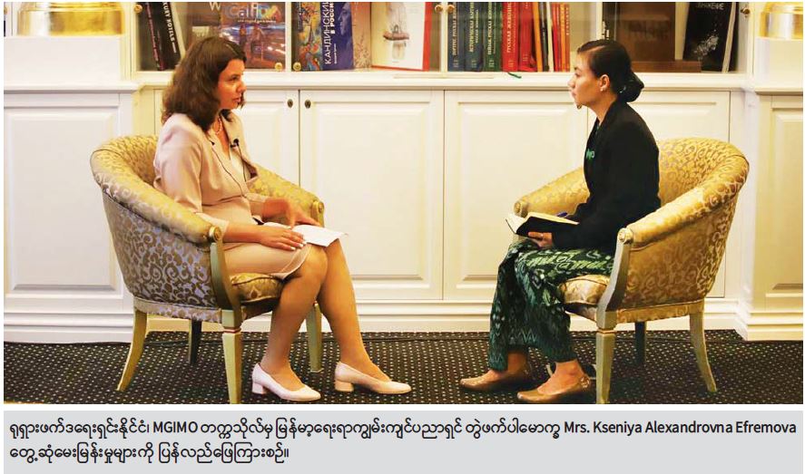 ရုရှားဖက်ဒရေးရှင်းနိုင်ငံ၊ MGIMOတက္ကသိုလ်မှ မြန်မာ့ရေးရာကျွမ်းကျင် ပညာရှင် တွဲဖက်ပါမောက္ခ Mrs. Kseniya Alexandrovna Efremova အား တွေ့ဆုံမေးမြန်းခဲ့ပါသည်။ အဆိုပါ မေးမြန်းမှုများနှင့် ဖြေကြားမှုများကို ပြောပြလိုက်ပါသည်။ ။