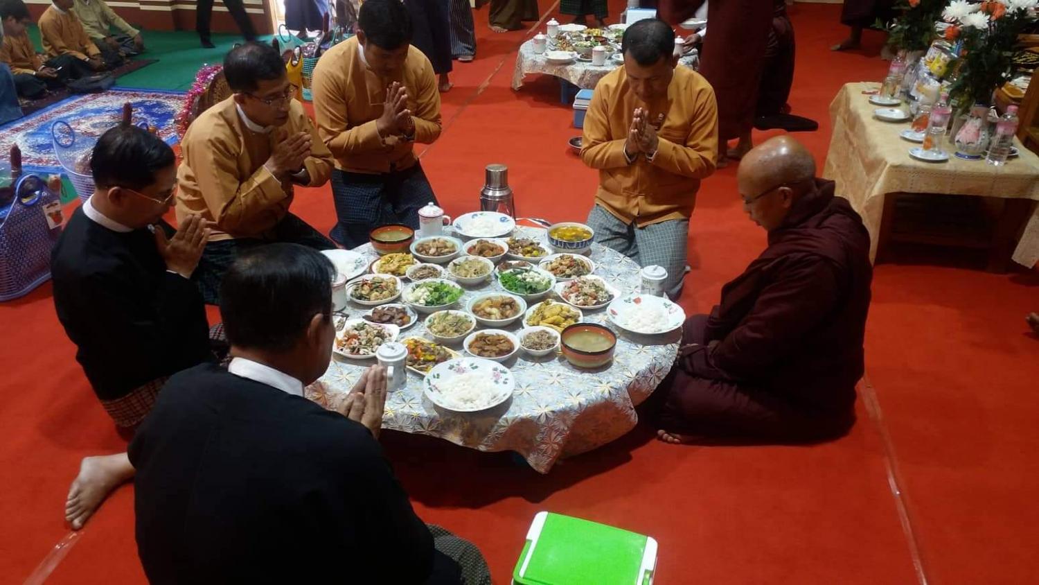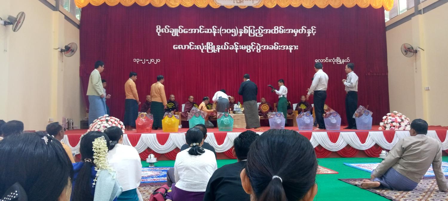 ရှေးဦးစွာ ပဉ္စသီမော်ကျောင်းတိုက်မှ ကျောင်းထိုင်ဆရာတော် ဥူးကဉ္စနထံမှ ငါးပါးသီလခံယူ စောင့်တည်ပြီး အခမ်းအနားကို စတင်ဖွင့်လှစ်သည်။ ဆက်လက်၍ တနင်္သာရီတိုင်းဒေသကြီးဝန်ကြီးချုပ် ဦးမြင့်မောင်၊ တနင်္သာရီတိုင်း ဒေသကြီး စိုက်ပျိုးရေး၊ မွေးမြူရေးနှင့် ဆည်မြောင်းဝန်ကြီး ဦးမြင့်ဆန်း၊ သယံဇာတနှင့် ပတ်ဝန်းကျင်ထိန်းသိမ်းရေးဝန်ကြီး ဦးလှထွေးနှင့် တိုင်းဒေသကြီး လွှတ်တော်ဥက္ကဋ္ဌ ဦးခင်မောင်အေးတို့က လှူဖွယ်ဝတ္ထုပစ္စည်းများ ဆက်ကပ် လှူဒါန်းခြင်း၊ ပရိတ်တရားတော်များ ဆက်လက်နာယူခြင်းနှင့် ဗိုလ်ချုပ်အောင်ဆန်းအတွက် ရည်စူး၍ ရေစက်သွန်းချ အမျှပေးဝေသည်။