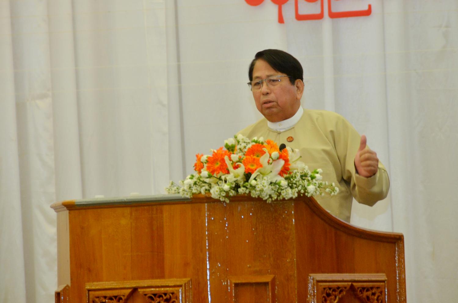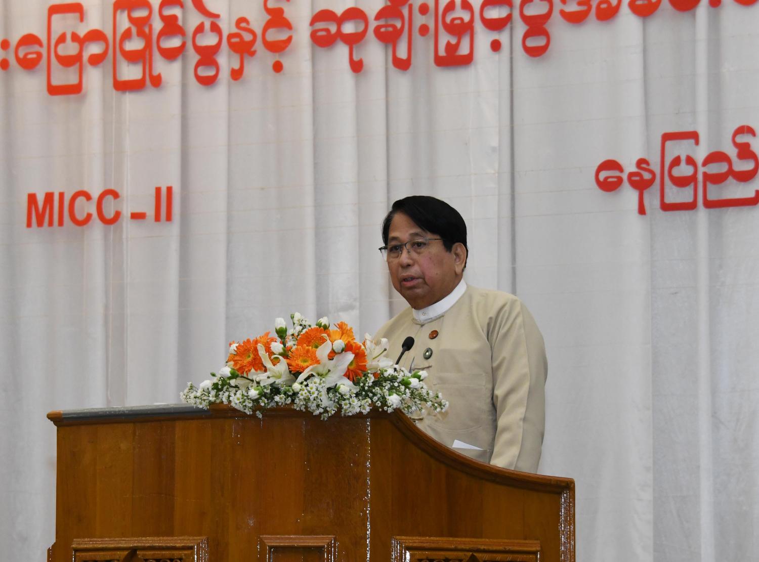 အခမ်းအနားတွင် ပြန်ကြားရေးဝန်ကြီးဌာန ပြည်ထောင်စုဝန်ကြီး ဒေါက်တာဖေမြင့် က အမှာစကားပြောကြားသည်။