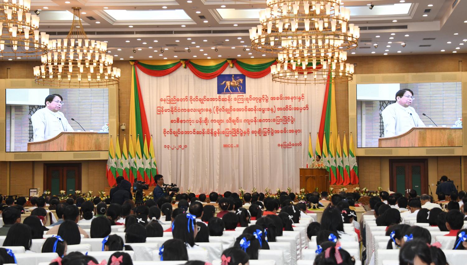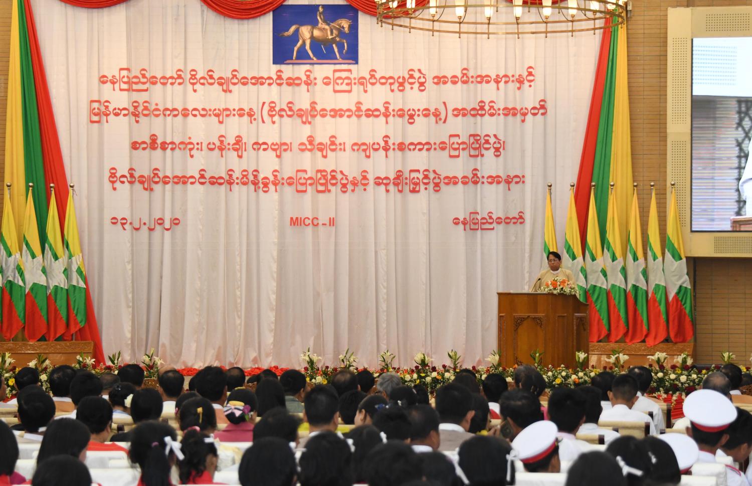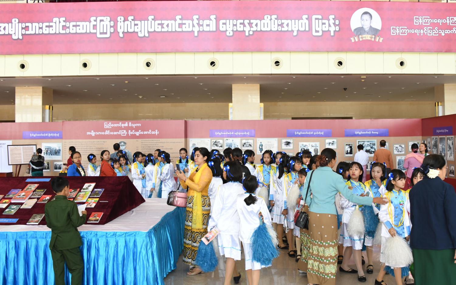 နေပြည်တော် ဗိုလ်ချုပ်အောင်ဆန်း ကြေးရုပ်တုဖွင့်ပွဲ အခမ်းအနားနှင့် မြန်မာနိုင်ငံ ကလေးများနေ့ ( ဗိုလ်ချုပ်အောင်ဆန်းမွေးနေ့) အထိမ်းအမှတ် စာစီစာကုံး၊ ပန်းချီ၊ ကဗျာ၊ သီချင်း၊ ကျပန်းစကားပြောပြိုင်ပွဲ၊ ဗိုလ်ချုပ်အောင်ဆန်းမိန့်ခွန်းပြောပြိုင်ပွဲနှင့် ဆုချီးမြှင့်ပွဲ အခမ်းအနားကို ယနေ့ နံနက် ၉ နာရီ ၄၅ မိနစ်တွင် နေပြည်တော်ရှိ မြန်မာအပြည် ပြည်ဆိုင်ရာကွန်ဗင်းရှင်းဗဟိုဌာန - ၂ ၌ ကျင်းပသည်။