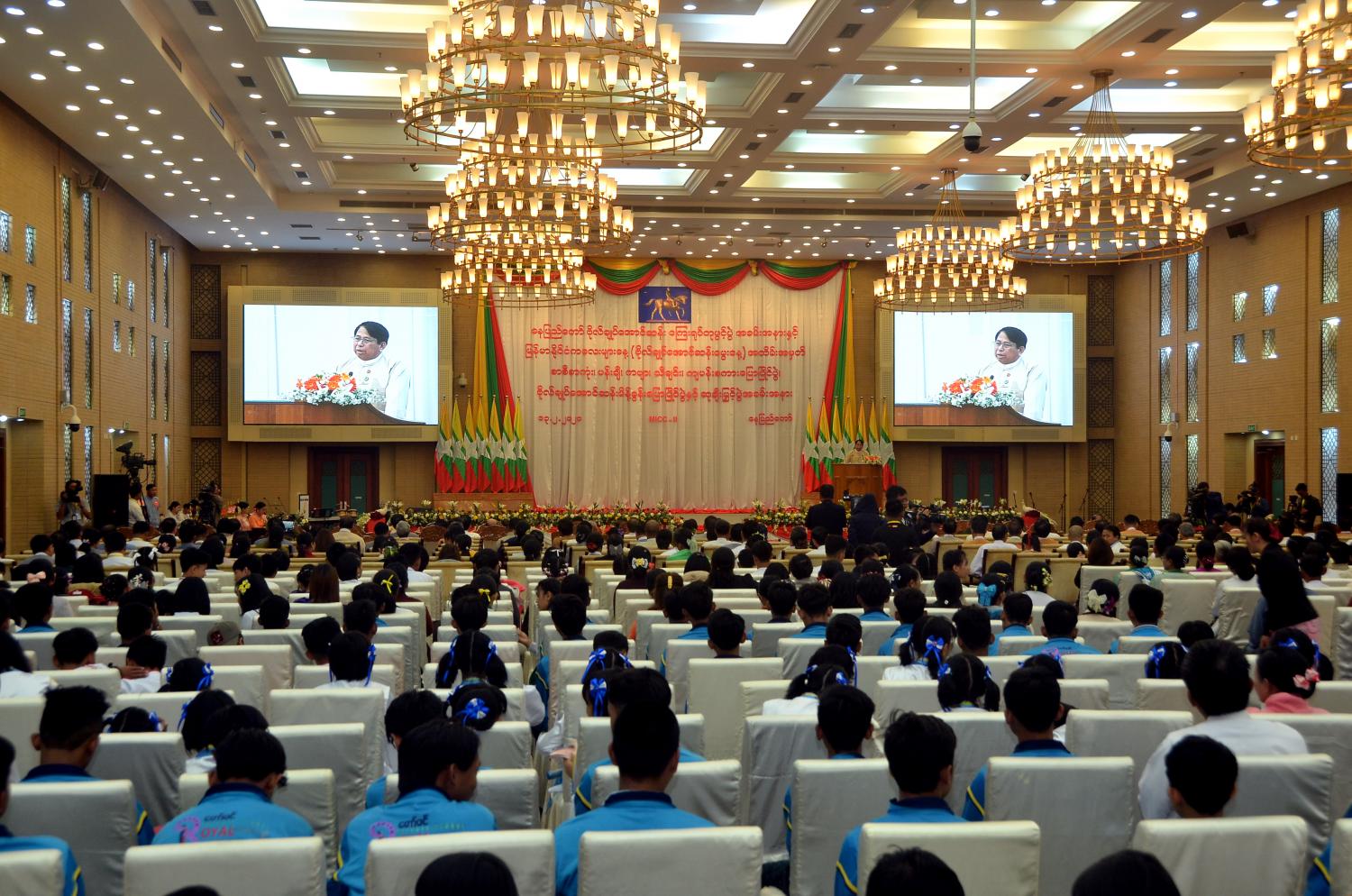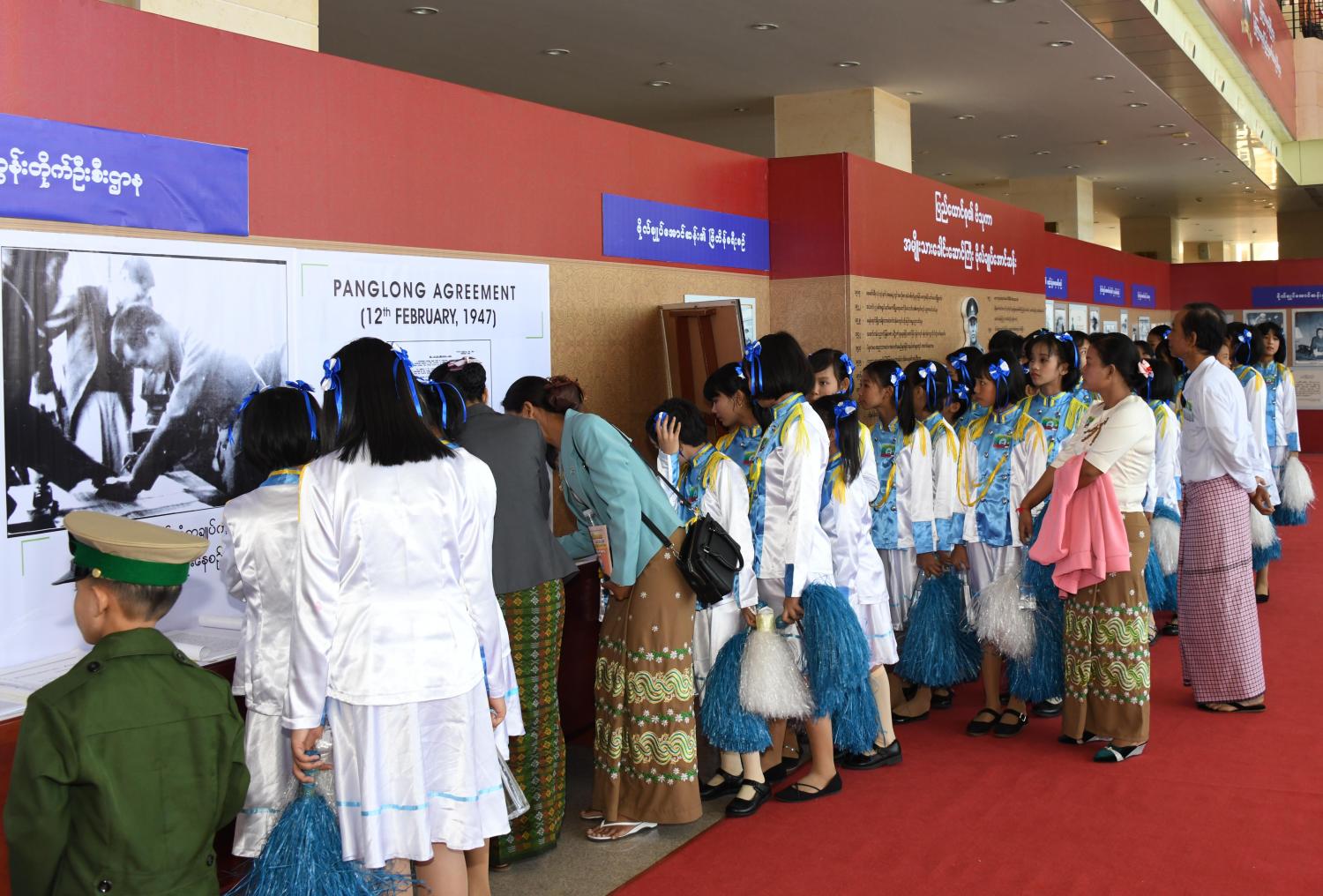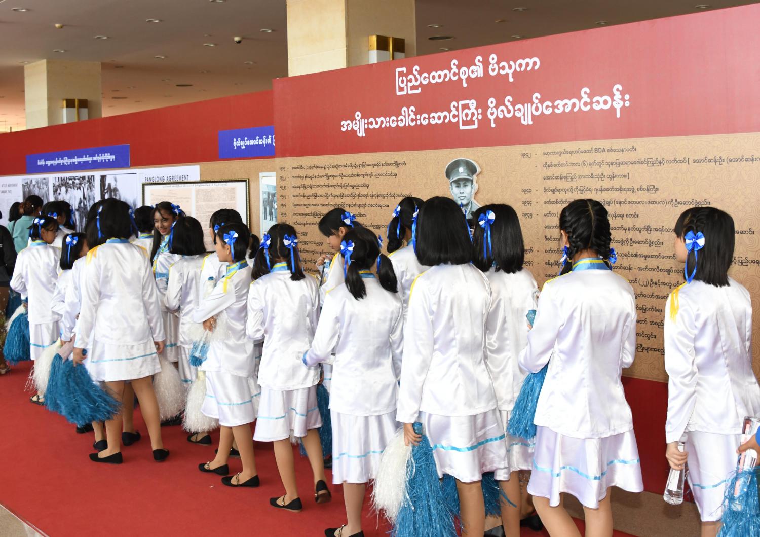နေပြည်တော် ဗိုလ်ချုပ်အောင်ဆန်း ကြေးရုပ်တုဖွင့်ပွဲ အခမ်းအနားနှင့် မြန်မာနိုင်ငံ ကလေးများနေ့ ( ဗိုလ်ချုပ်အောင်ဆန်းမွေးနေ့) အထိမ်းအမှတ် စာစီစာကုံး၊ ပန်းချီ၊ ကဗျာ၊ သီချင်း၊ ကျပန်းစကားပြောပြိုင်ပွဲ၊ ဗိုလ်ချုပ်အောင်ဆန်းမိန့်ခွန်းပြောပြိုင်ပွဲနှင့် ဆုချီးမြှင့်ပွဲ အခမ်းအနားကို ယနေ့ နံနက် ၉ နာရီ ၄၅ မိနစ်တွင် နေပြည်တော်ရှိ မြန်မာအပြည် ပြည်ဆိုင်ရာကွန်ဗင်းရှင်းဗဟိုဌာန - ၂ ၌ ကျင်းပသည်။
