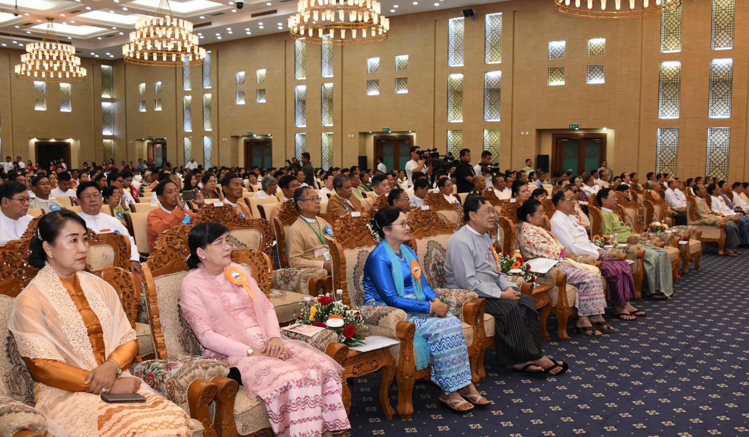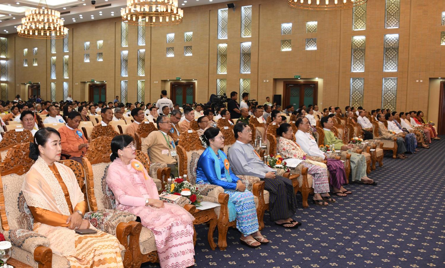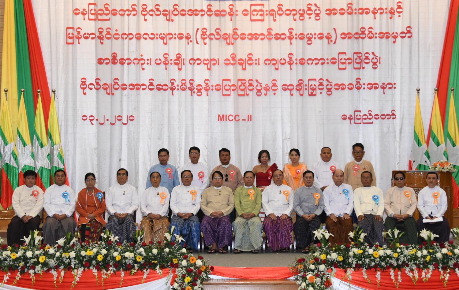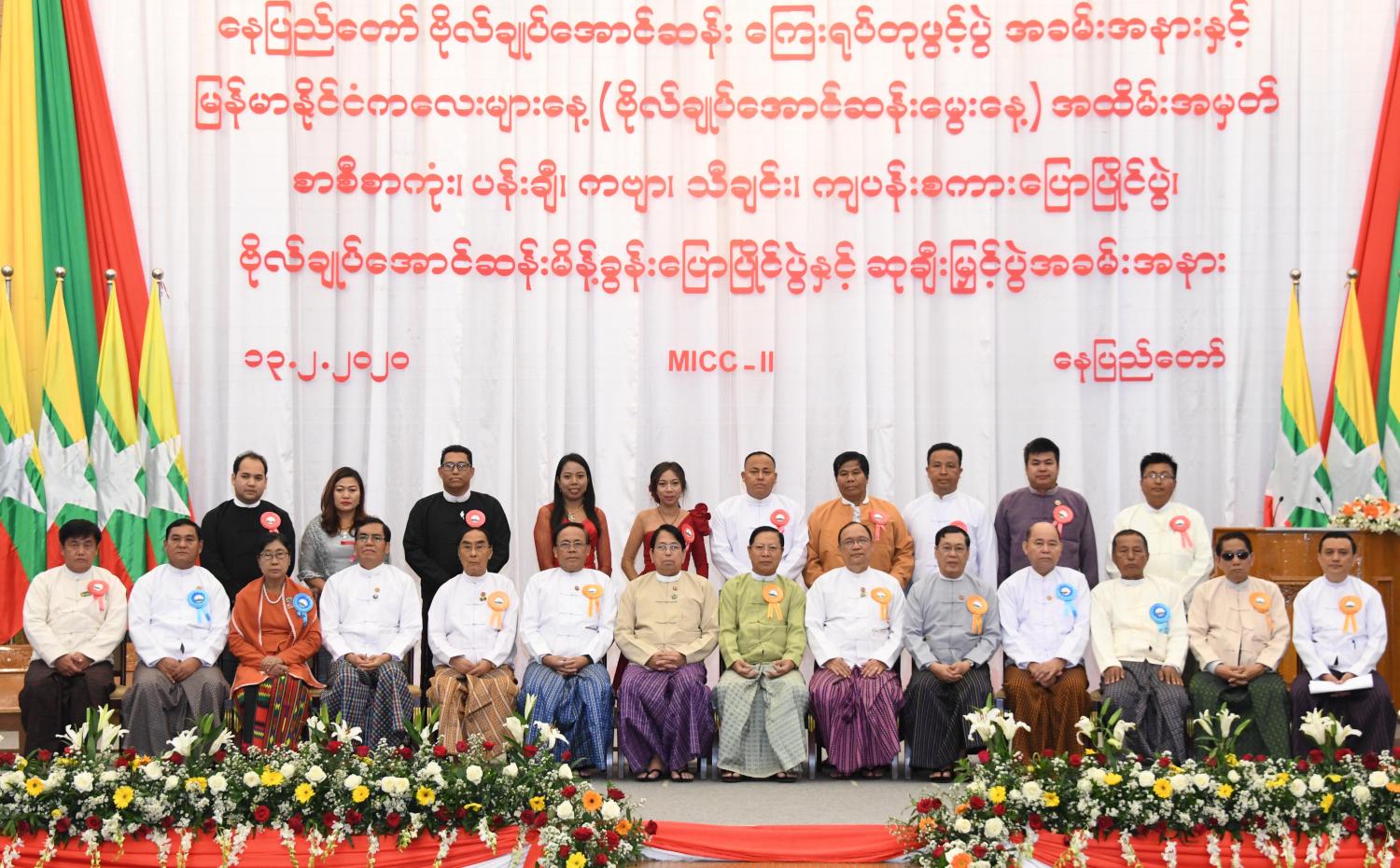 ထို့နောက် ပြည်ထောင်စုဝန်ကြီးများ၊ မြန်မာနိုင်ငံအမျိုးသားလူ့အခွင့်အရေး ကော်မရှင် ဥက္ကဋ္ဌ၊ ဒုတိယဝန်ကြီးများနှင့် လွှတ်တော် ရေးရာကော်မတီဥက္ကဋ္ဌများသည် အခမ်းအနားသို့ တက်ရောက်လာကြသူများနှင့် အတူမှတ်တမ်းတင်ဓာတ်ပုံရိုက်ကြသည်။