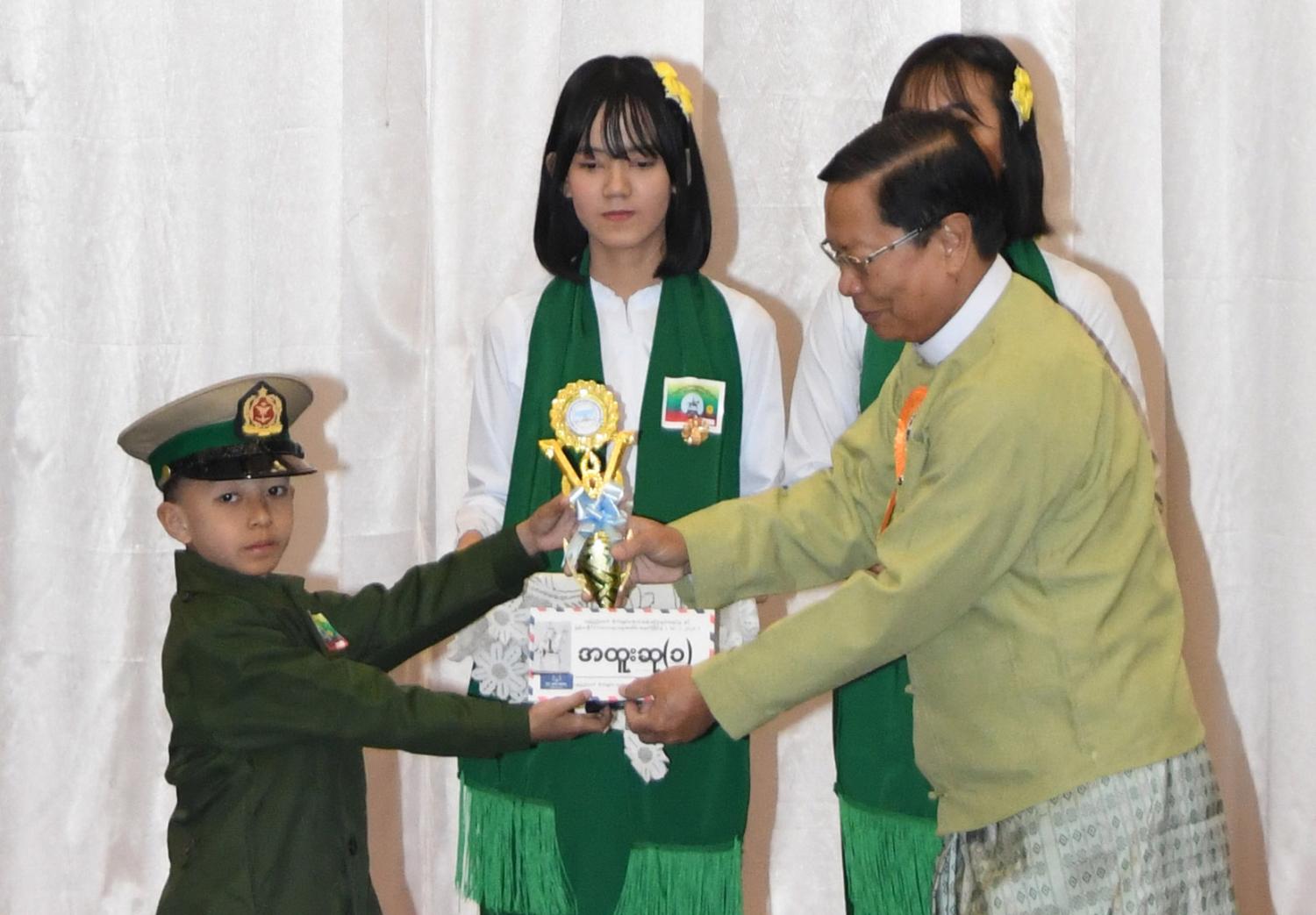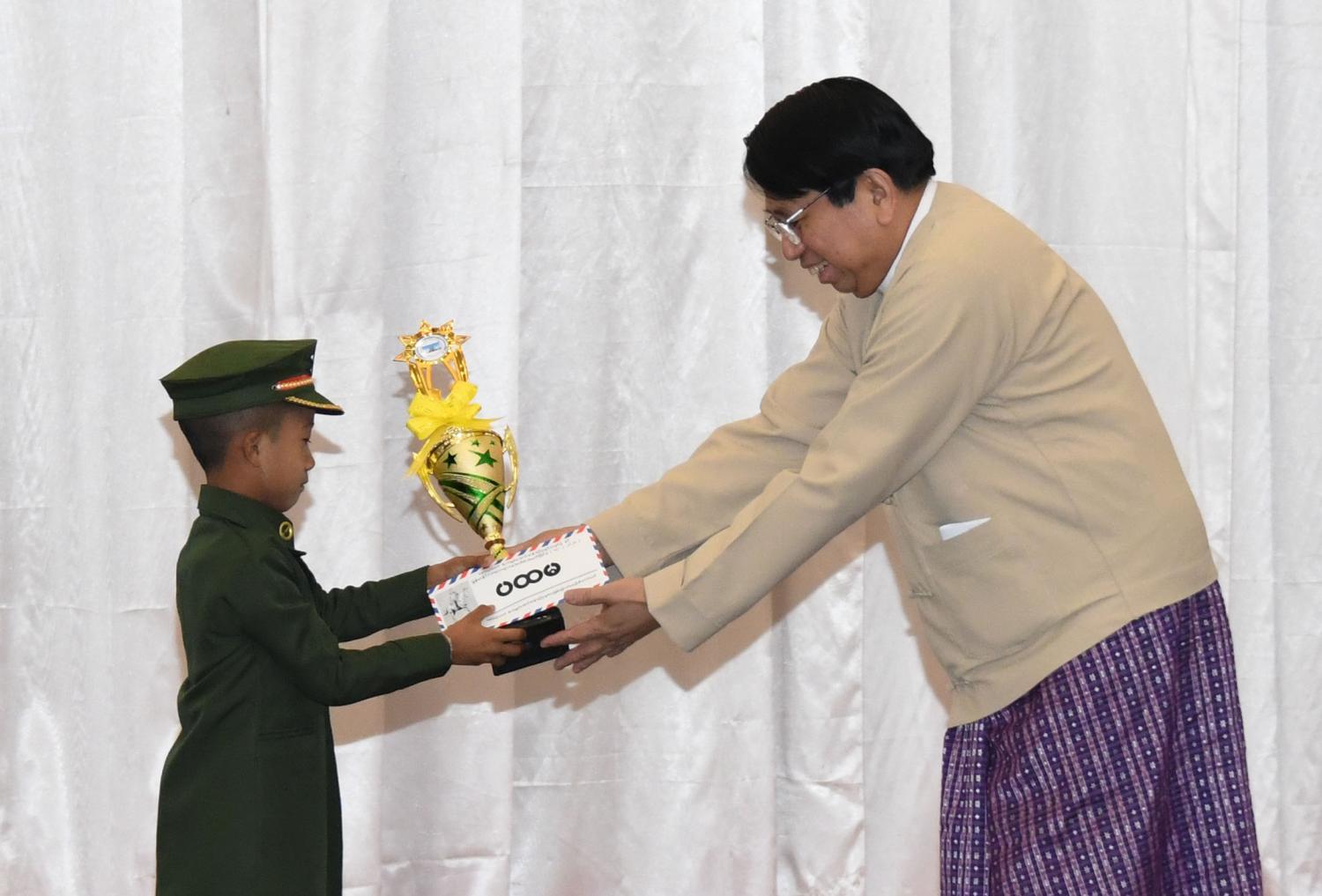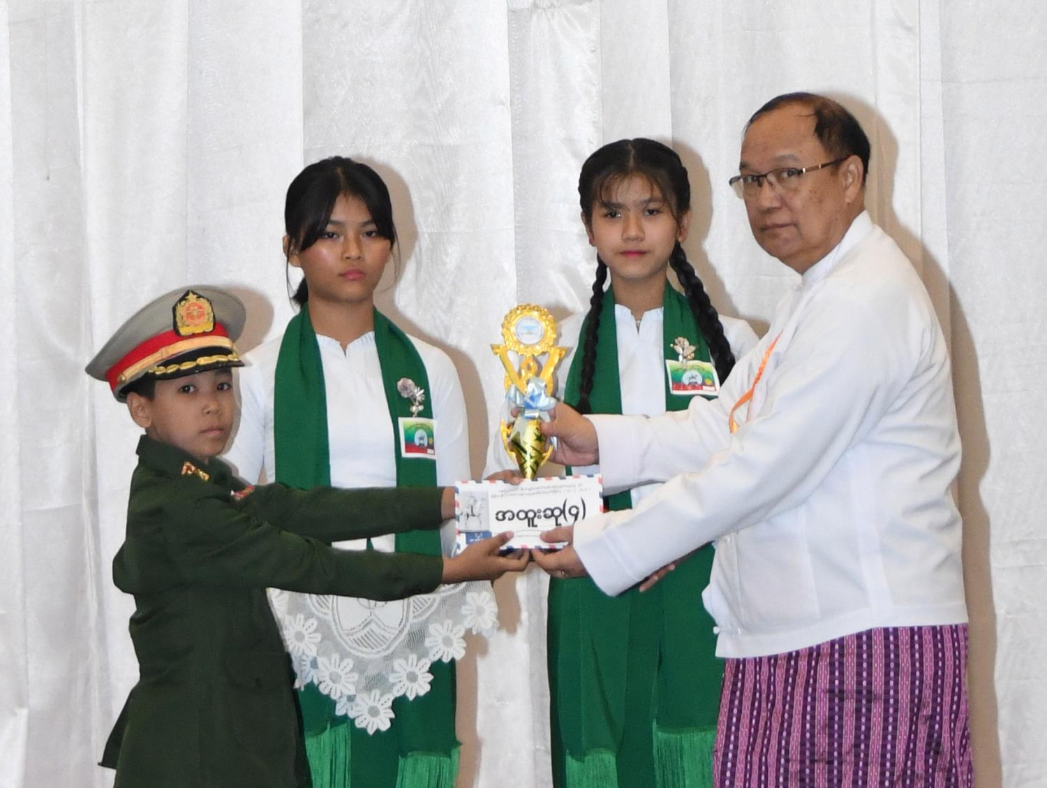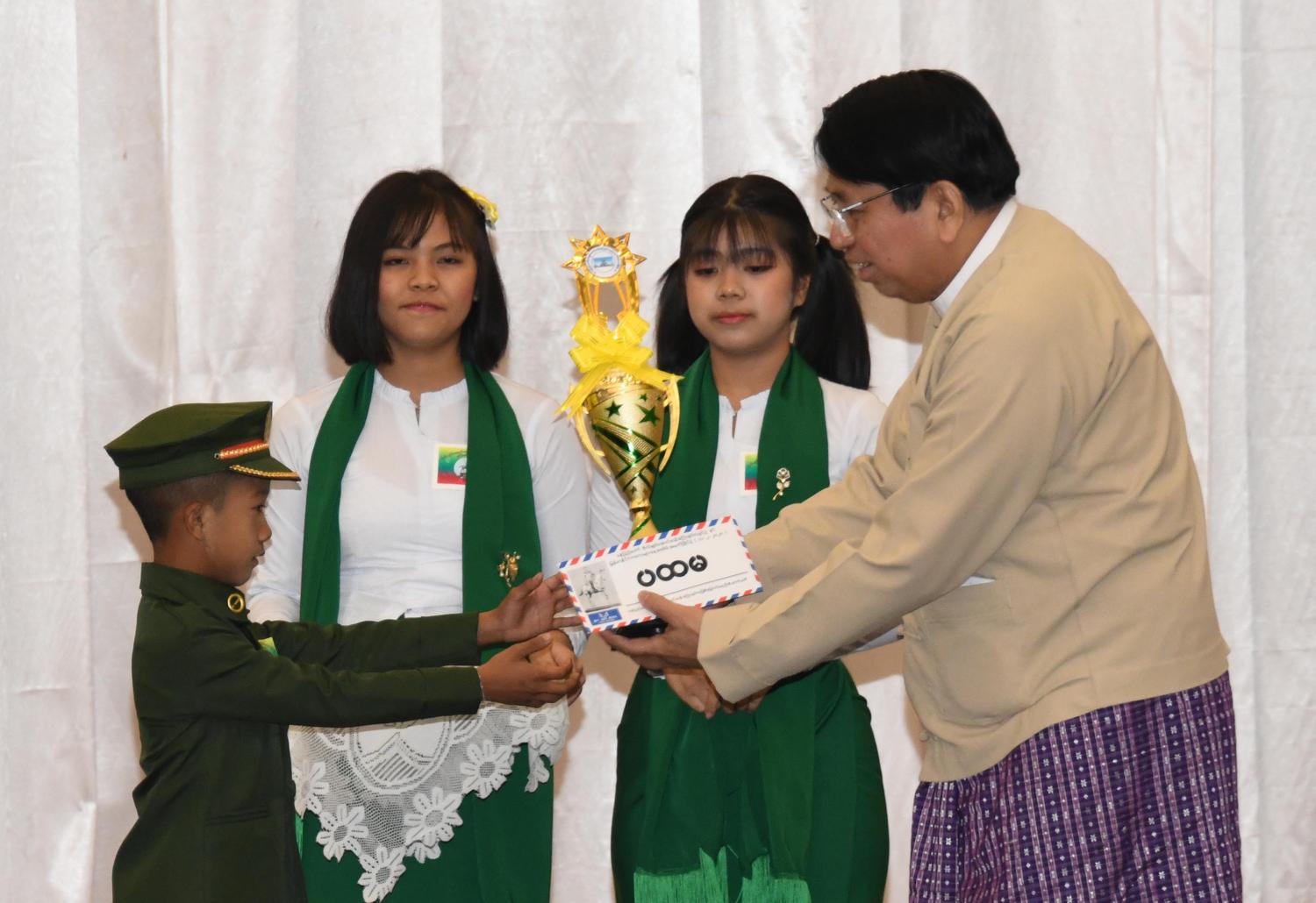 မွန်းလွဲပိုင်းတွင် အခမ်းအနားအစီအစဉ် ဒုတိယပိုင်းကို ဆက်လက်ကျင်းပရာ မြန်မာနိုင်ငံကလေးများနေ့(ဗိုလ်ချုပ် အောင်ဆန်း မွေးနေ့) အထိမ်းအမှတ် ကဗျာရွတ်၊ သီချင်းဆိုနှင့် ကျပန်းစကားပြောပြိုင်ပွဲများကိုကျင်းပပြီး မြန်မာနိုင်ငံကလေးများနေ့ (ဗိုလ်ချုပ်အောင်ဆန်းမွေးနေ့) အထိမ်းအမှတ် စာစီစာကုံးပြိုင်ပွဲ အထက်တန်းအဆင့်နှင့် အလယ်တန်းအဆင့် တို့တွင် ပထမ၊ ဒုတိယနှင့် တတိယဆုရရှိကြသူများကိုလည်းကောင်း၊ ခဲပန်းချီပြိုင်ပွဲ အထက်တန်းအဆင့်နှင့် အလယ်တန်းအဆင့် တို့တွင် ပထမ၊ ဒုတိယနှင့် တတိယဆုရရှိကြသူများကိုလည်းကောင်း ဆေးပန်းချီပြိုင်ပွဲ အထက်တန်းအဆင့်နှင့် အလယ်တန်းအဆင့်တို့တွင် ပထမ၊ ဒုတိယနှင့်တတိယဆုရရှိကြသူများကို လည်းကောင်း၊ ကဗျာရွတ်ပြိုင်ပွဲ မူလတန်းအဆင့်တွင် ပထမ၊ ဒုတိယနှင် တတိယဆုရရှိကြသူများကို လည်းကောင်း၊ သီချင်းဆိုပြိုင်ပွဲ အထက်တန်းအဆင့်နှင့် အလယ်တန်းအဆင့်တို့တွင် ပထမ၊ ဒုတိယနှင့် တတိယဆိုရရှိကြသူများကိုလည်းကောင်း၊ ကျပန်းစကား ပြောပြိုင်ပွဲ အထက်တန်းအဆင့်နှင့် အလယ်တန်း အဆင့်တို့တွင် ပထမ၊ ဒုတိယနှင့် တတိယဆု ရရှိကြသူများကိုလည်းကောင်း ဆုများပေးအပ်ချီးမြှင့်ခဲ့ကြကြောင်း သိရသည်။