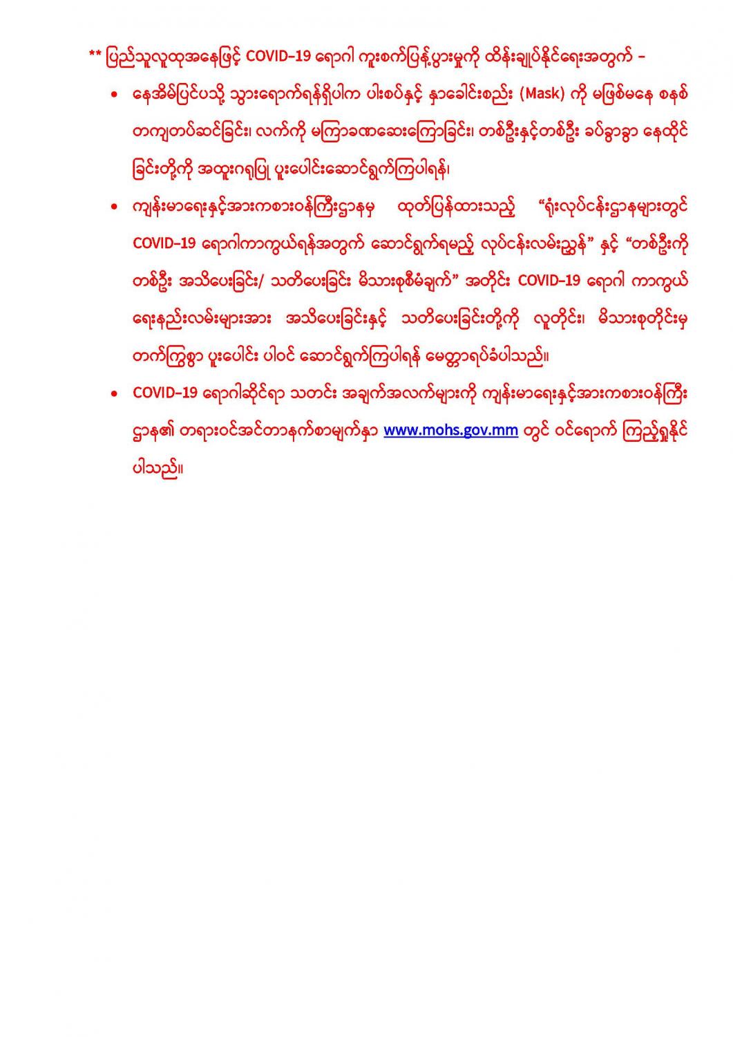 COVID-19 ရောဂါစောင့်ကြပ်ကြည့်ရှုမှုနှင့်ပတ်သက်၍ သတင်းထုတ်ပြန်ခြင်း (၇-၇-၂၀၂၁) ရက်နေ့၊ ည (၈:၀၀)နာရီ 07/07/2021 COVID-19 ရောဂါစောင့်ကြပ်ကြည့်ရှုမှုနှင့်ပတ်သက်၍ သတင်းထုတ်ပြန်ခြင်း (၇-၇-၂၀၂၁) ရက်နေ့၊ ည (၈:၀၀)နာရီ