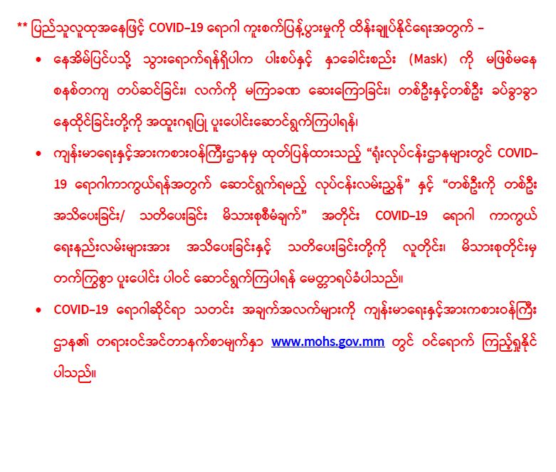 COVID-19 ရောဂါစောင့်ကြပ်ကြည့်ရှုမှုနှင့်ပတ်သက်၍ သတင်းထုတ်ပြန်ခြင်း