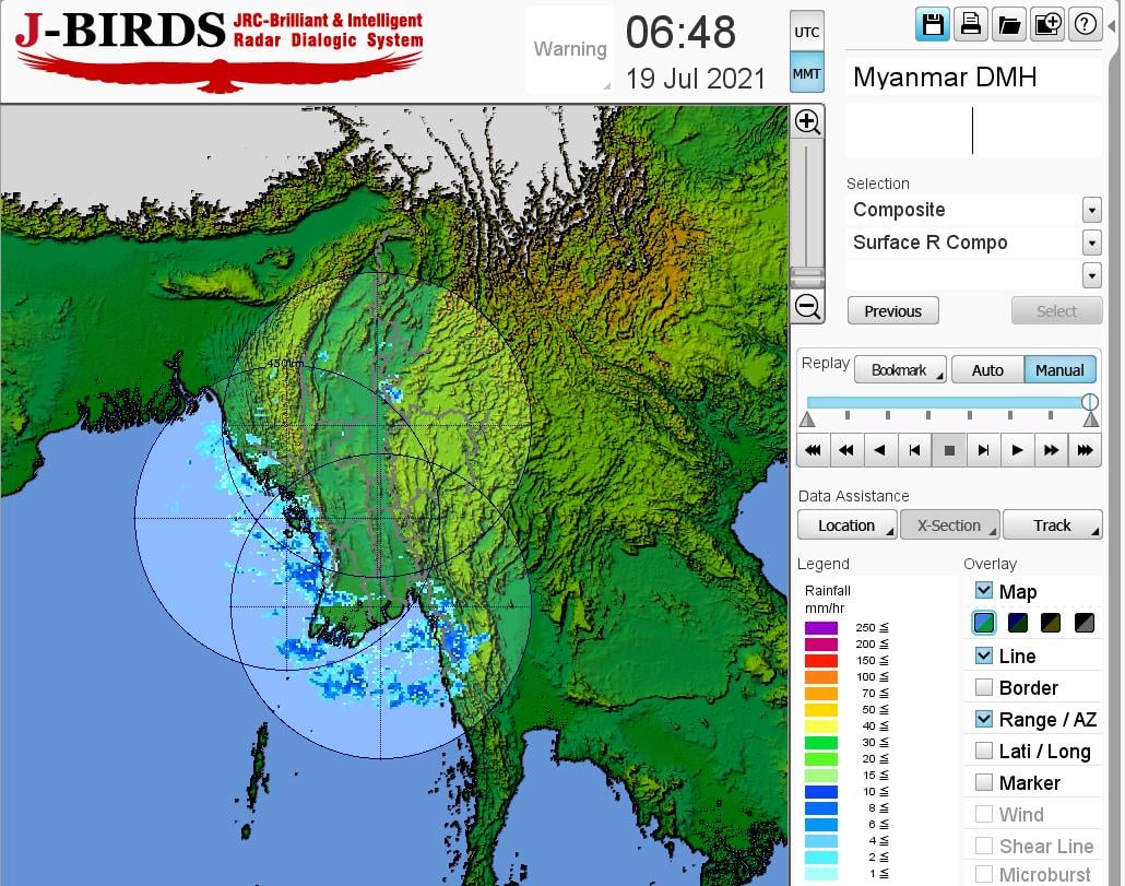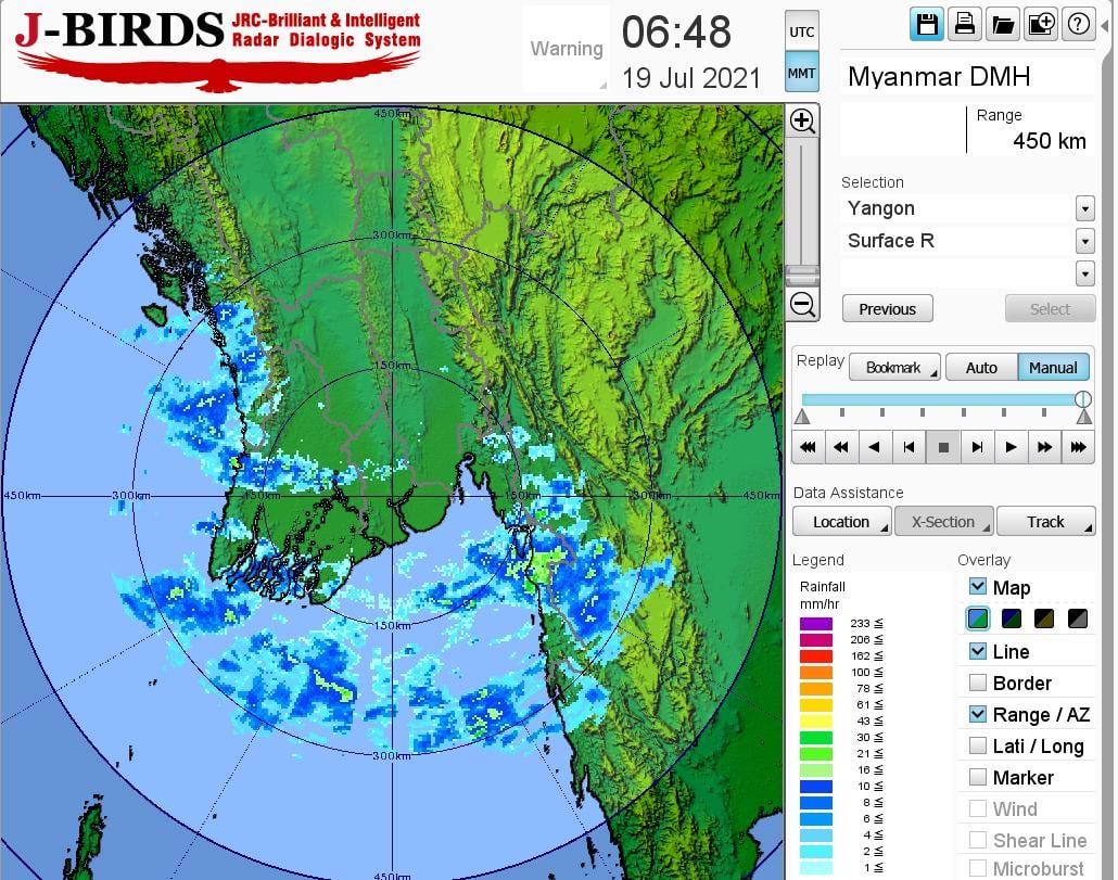 ဘင်္ဂလားပင်လယ်အော်အခြေအနေ။ကပ္ပလီပင်လယ်ပြင်နှင့် ဘင်္ဂလားပင်လယ်အော်တောင်ပိုင်းတို့တွင်မုတ်သုံလေအားကောင်းရာမှ အားအလွန်ကောင်းနေပြီး၊ ကျန်ဘင်္ဂလားပင်လယ်အော်တွင် မုတ်သုံလေအားနည်းနေပါသည်။