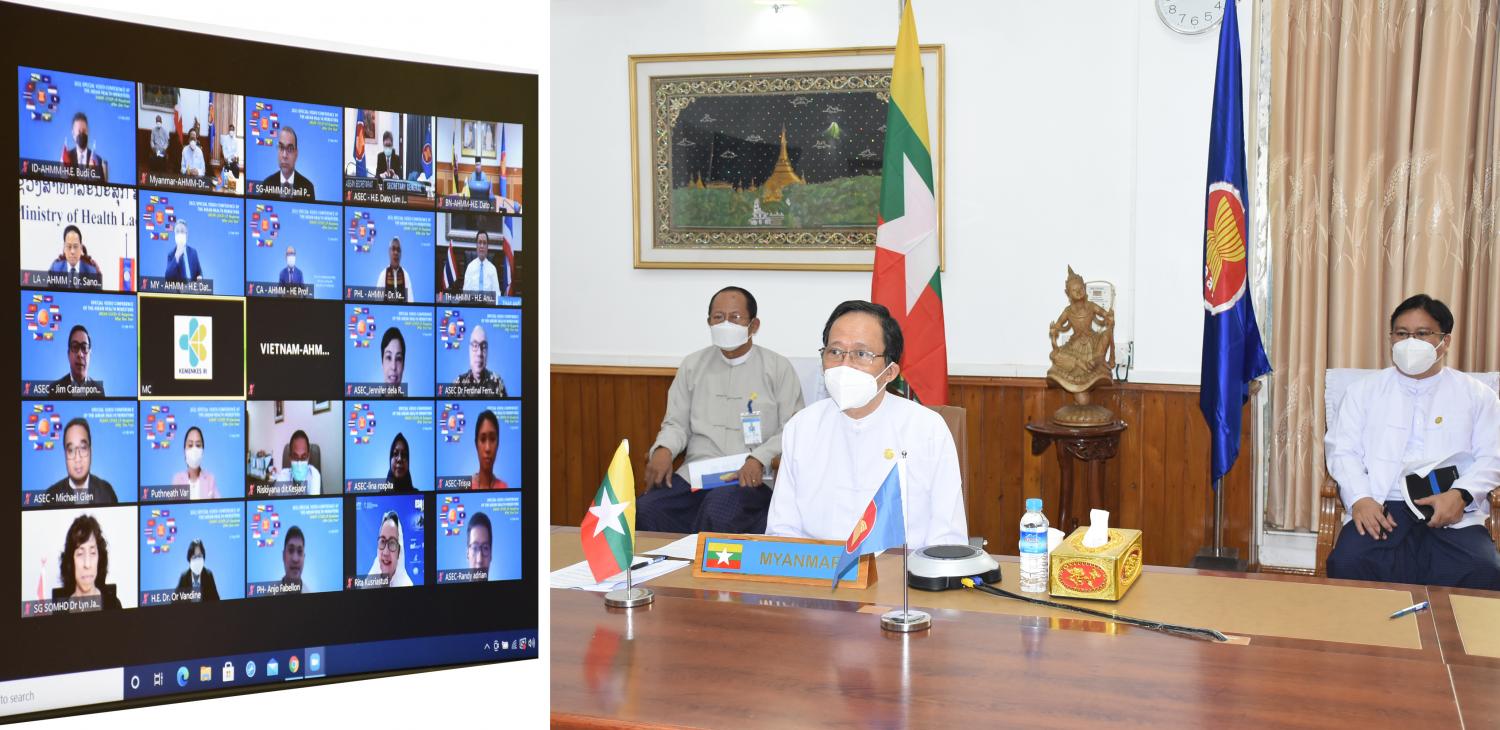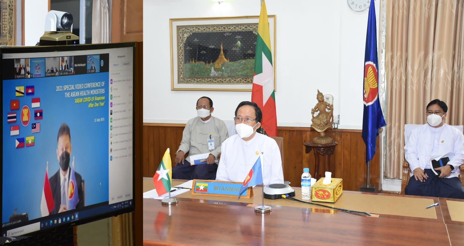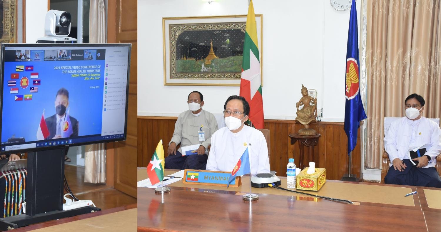 ကျန်းမာရေးနှင့် အားကစားဝန်ကြီးဌာန ပြည်ထောင်စုဝန်ကြီး ဒေါက်တာ သက်ခိုင်ဝင်းသည် ယနေ့နံနက်ပိုင်းတွင် တစ်နှစ်အကြာ ကိုဗစ်-၁၉ ရောဂါ တုံ့ပြန်ရေး ၂၀၂၁ အထူးဗီဒီယို ကွန်ဖရင့် Special VIDEO Conference of the 2021 ASEAN Health Ministers on “ASEAN COVID-19 Response after One Year” ကို ကျန်းမာရေးနှင့် အားကစားဝန်ကြီးဌာန ပြည်ထောင်စုဝန်ကြီး ဧည့်ခန်းမမှ တက်ရောက်ဆွေးနွေးသည်။ အစည်းအဝေးတွင် အာဆီယံဥက္ကဋ္ဌ အင်ဒိုနီးရှားနိုင်ငံမှ တစ်နှစ်အတွင်း ဒေသတွင်း ဆိုင်ရာ ကျန်းမာရေးနှင့် သက်ဆိုင်သော ကိုဗစ်-၁၉ တုံ့ပြန်ရေး အဓိကအချက်များ နှင့်စပ်လျဉ်း ၍ အဖွင့်အမှာစကားပြောကြားပြီး အာဆီယံအတွင်းရေးမှူးချုပ်မှ တစ်နှစ်အတွင်း ဒေသတွင်း ဆိုင်ရာ ကိုဗစ်-၁၉ တုံ့ပြန်ရေး အဓိကအချက်များနှင့်စပ်လျဉ်း၍ အမှာစကားပြော ကြားသည်။ ဆက်လက်၍ ကမ္ဘာ့ကျန်းမာရေးအဖွဲ့မှ ကိုဗစ်-၁၉ ရောဂါကူးစက်မှု အပြည်ပြည်ဆိုင်ရာ နှင့် ဒေသတွင်းဆိုင်ရာ လက်ရှိအခြေအနေများ၊ ဒေသတွင်းနိုင်ငံများတွင် ဖြစ်ပေါ်လျက်ရှိသော SARS-CoV-2 မျိုးရိုးဗီဇ ပြောင်းလဲမှုဖြစ်စဉ်များနှင့် အဓိကအကြံပြုချက်များ ဆွေးနွေးပြော ကြားသည်။ ယင်းနောက် အဖွဲ့ဝင်နိုင်ငံများဖြစ်သည့် ဘရူနိုင်း၊ ကမ္ဘောဒီးယား၊ အင်ဒိုနီးရှား၊ လာအို၊ မလေးရှား၊ မြန်မာ၊ ဖိလစ်ပိုင်၊ စင်္ကာပူ၊ ထိုင်းနှင့်ဗီယက်နမ်နိုင်ငံတို့မှ ကျန်းမာရေးဝန်ကြီး များသည် ကိုဗစ်-၁၉ ကာကွယ်ဆေးထိုးနှံရေးစီမံကိန်း၊ SARS-CoV-2 မျိုးရုံးဗီဇပြောင်းလဲမှု စဉ်ဆက်မပြတ် စောင့်ကြည့်ရေး အစီအစဉ်များအပါအဝင် ကိုဗစ်-၁၉ တုံ့ပြန်ရေးဆောင်ရွက် ချက်များနှင့် ဒေသတွင်း ပူးပေါင်းဆောင်ရွက်မှုများကို နိုင်ငံတစ်ခုချင်းဆီအလိုက် အမြင်ချင်း ဖလှယ်ဆွေးနွေးခဲ့ကြသည်။ အစည်းအဝေးတွင် ပြည်ထောင်စုဝန်ကြီး ဒေါက်တာသက်ခိုင်ဝင်း က လက်ရှိအချိန်တွင် မြန်မာနိုင်ငံ ၌အဓိကရင်ဆိုင်လျက်ရှိသော ပြဿနာမှာ ကျန်းမာ ရေးလူ့စွမ်းအားများ နည်းပါး နေခြင်းဖြစ် ကြောင်း၊ ကျန်းမာရေးဝန်ထမ်းများမှာ အကြောင်း အမျိုးမျိုးကြောင့် ၎င်းတို့နှင့် သက်ဆိုင်သော ကျန်းမာရေးဌာနများမှ ကင်းကွာလျက်ရှိကြောင်း၊ နိုင်ငံအနှံ့ ကျန်းမာရေးဌာန များမှာ ကိုဗစ်-၁၉ တတိယလှိုင်းကို ကျန်းမာရေးဝန်ထမ်း အလွန် နည်းပါးစွာဖြင့် ရင်ဆိုင် ဖြေရှင်းနေရပါကြောင်း။ မိမိတို့အနေဖြင့် ကျန်းမာရေးဝန်ထမ်းများ ရောဂါကူးစက်မှုမရှိ စေရေး၊ လုံခြုံရေးကို အဓိကထား ဆောင်ရွက်နေကြောင်း၊ ကျန်းမာရေးဝန်ထမ်း များအတွက် လိုအပ်သော ကူးစက်ရောဂါ ကာကွယ် ရေးပစ္စည်းများ ပြတ်တောက်မှုမရှိဘဲ ရရှိစေရေးကို ကပ်ရောဂါ ဖြစ်ပွားမှု ကာလတစ်လျောက် ဦးစားပေးဆောင်ရွက်ကြောင်း၊ ကာကွယ်ဆေး ထိုးခြင်းတွင် လည်း ကျန်းမာရေးဝန်ထမ်းများကို ဦးစားပေး၍ ကာကွယ်ဆေး ထိုးနှံ ပေးခဲ့ကြောင်း။ မြန်မာ