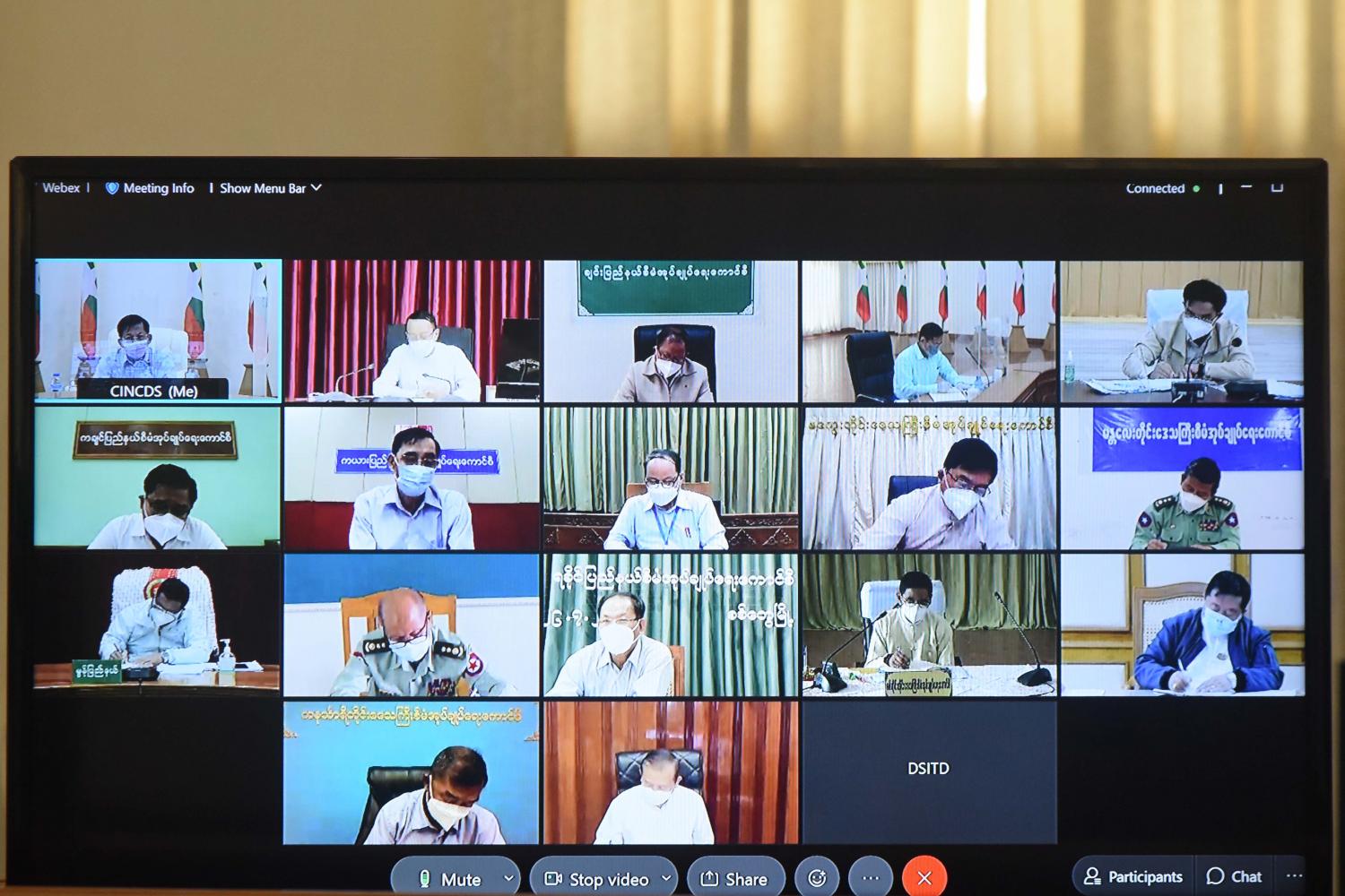 အစည်းအဝေးသို့ နိုင်ငံတော်စီမံအုပ်ချုပ်ရေးကောင်စီ ဒုတိယဥက္ကဋ္ဌ ဒုတိယ ဗိုလ်ချုပ်မှူးကြီး စိုးဝင်း၊ ကောင်စီအဖွဲ့ဝင် ဗိုလ်ချုပ်ကြီး တင်အောင်စန်း၊ ဒုတိယ ဗိုလ်ချုပ်ကြီး မိုးမြင့်ထွန်း၊ ဒုတိယဗိုလ်ချုပ်ကြီး စိုးထွဋ်၊ ကောင်စီတွဲဖက် အတွင်းရေးမှူး ဒုတိယဗိုလ်ချုပ်ကြီး ရဲဝင်းဦး၊ ကျန်းမာရေးနှင့် အားကစားဝန်ကြီးဌာန ပြည်ထောင်စု ဝန်ကြီး ဒေါက်တာ သက်ခိုင်ဝင်း၊ စီမံကိန်းနှင့် ဘဏ္ဍာရေးဝန်ကြီးဌာန ပြည်ထောင်စု ဝန်ကြီး ဦးဝင်းရှိန်၊ ကာကွယ်ရေးဦးစီးချုပ်ရုံး(ကြည်း)မှ တပ်မတော်အရာရှိကြီးများနှင့် တာဝန်ရှိသူများ တက်ရောက်ကြပြီး တိုင်းဒေသကြီးနှင့် ပြည်နယ် စီမံအုပ်ချုပ်ရေး ကောင်စီဥက္ကဋ္ဌများ၊ တာဝန်ရှိသူများက Video Conferencing ဖြင့် တက်ရောက်ကြ သည်။