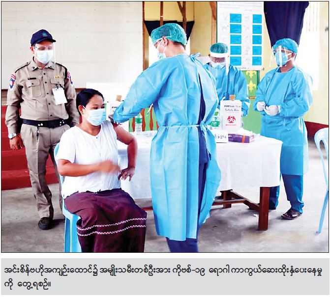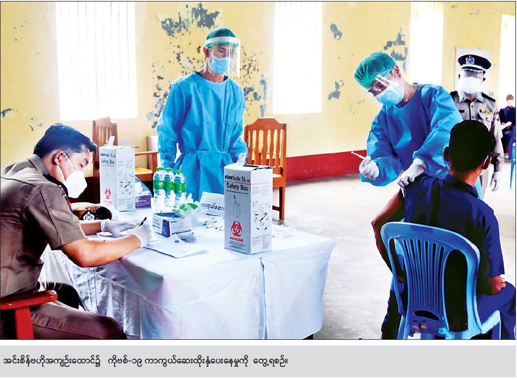 ကာကွယ်ဆေးထိုးဖို့ ဆန္ဒပြု “ကိုဗစ်-၁၉ ကာကွယ်ဆေးနဲ့ ပတ်သက်လို့ ဒီနေ့ အင်းစိန်ဗဟိုအကျဉ်းထောင်က အကျဉ်းသား တွေကို ပထမဆုံး စတင်ထိုးနှံပေးတာဖြစ်ပါတယ်။ အရင် ပထမလှိုင်းနဲ့ ဒုတိယလှိုင်း တုန်းကတော့ မထိုးဖြစ်ခဲ့ဘူး။ အခုလည်း ထောင်အတွင်း အကျဉ်းသားတွေအနေနဲ့ ကိုဗစ်-၁၉ ရောဂါ ကူးစက်ပြန့်ပွားမှုတော့ မရှိသေးဘူး။ ဒါပေမယ့် ကြိုတင်ကာကွယ်တဲ့အနေနဲ့ ဒီကနေ့ ကနဦး ထိုးနှံပေးတာ ဖြစ်ပါတယ်။ အကျဉ်းသား/ အချုပ်သား ဆန္ဒပြုတဲ့သူနဲ့ ဆေးထိုးဖို့ အကျုံးဝင်တဲ့သူအားလုံးကို စာရင်းကောက်ခံပြီး ထိုးနှံပေးသွားမှာပါ။ တချို့ကလည်း ရောဂါ လက်ခံ အခြေအနေတစ်ရပ်ရပ်ကြောင့် မထိုးကြတဲ့သူတွေ လည်းရှိတယ်။ အခုလတ်တလော မှာတော့ ကာကွယ်ဆေးထိုးဖို့ ဆန္ဒပြုထားတဲ့သူ ၂၅၀၀ကျော်ရှိပါတယ်။ စာရင်းပေးထားတဲ့ အားလုံးကိုတော့ ကာကွယ်ဆေး ထိုးနှံပေးသွားမှာပါ” ဟု အင်းစိန်ဗဟိုအကျဉ်းထောင် မှ တာဝန်ရှိသူတစ်ဦးက ပြောကြားသည်။ ထပ်မံထိုးနှံပေးသွားမည် အင်းစိန်ဗဟို အကျဉ်းထောင်အတွင်းရှိ အကျဉ်းသား/ အချုပ်သားများအား ကိုဗစ်-၁၉ ကာကွယ်ဆေးယခုကဲ့သို့ ထိုးနှံပေးခြင်းသည်နိုင်ငံတော်စီမံအုပ်ချုပ် ရေးကောင်စီ၏ လမ်းညွှန်မှု၊ ကျန်းမာရေးနှင့် အားကစားဝန်ကြီးဌာန၏ ကြီးကြပ်မှုတို့ဖြင့် အကျဉ်း ဦးစီးဌာနမှ တာဝန်ယူကာ စတင်ထိုးနှံပေးခြင်းဖြစ်သည်။ အဆိုပါ ကိုဗစ်-၁၉ ကာကွယ်ဆေးထိုးနှံမှုကို အင်းစိန်ထောင်အတွင်း ဆေးရုံ၌ပင် အကျဉ်း ထောင် ဆရာဝန်ကြီးများနှင့် သူနာပြုဆေးဝန်ထမ်းများက အကျဉ်းသား/ အချုပ်သား အမျိုး သား၊ အမျိုးသမီး စုစုပေါင်း ၆၁ဝ ကို ကြိုတင်ကျန်းမာရေး ဆေးစစ်မှု များ ပြုလုပ်ကာ ယနေ့ နံနက် ၉ နာရီခွဲမှ ညနေ ၄ နာရီအထိ ထိုးနှံပေးခဲ့ခြင်းဖြစ်ပြီး ကျန်းမာရေးနှင့် အားကစား ဝန်ကြီးဌာန၏ ဆေးဖြန့်ဝေရရှိမှုအပေါ် မူတည်ကာ နောက်ရက်များတွင်လည်း ကိုဗစ်-၁၉ ကာကွယ်ဆေးကို ထပ်မံထိုးနှံပေးသွားမည်ဖြစ် ကြောင်း သိရသည်။ ဝိုင်းဝန်းပူးပေါင်းကူညီ အဆိုပါ အင်းစိန်ဗဟိုထောင်အတွင်း ကိုဗစ်-၁၉ ကာကွယ်ဆေးထိုးနှံပေးမှုတွင် အကျဉ်းဦးစီးဌာန ရန်ကုန်တိုင်းဒေသကြီးဦးစီးမှူး ညွှန်ကြားရေးမှူး ဦးဇော်ဇော်၊ အင်းစိန်ဗဟိုအကျဉ်းထောင် တာဝန်ခံ အရာရှိ ဒုတိယညွှန်ကြားရေးမှူး ဦးဇော်လင်းအောင်၊ အကျဉ်းထောင်ဆေးရုံမှ ဆေးရုံအုပ် လက်ထောက် ညွှန်ကြားရေးမှူးဒေါက်တာစံလင်းထွန်းနှင့် ဆရာဝန် များ၊ သူနာပြုများ၊ ကျန်းမာရေးမှူးများ၊ ဆေးမှူးများနှင့် တာဝန်ရှိသူများ တက်ရောက်ကာ ဝိုင်းဝန်း ပူးပေါင်း ကူညီဆောင်ရွက် ခဲ့ကြသည်။ လတ်တလောတွင် ရန်ကုန်မြို့ အင်းစိန်ဗဟို အကျဉ်းထောင်၌ အကျဉ်းသား/ အချုပ်သား အမျိုးသား၊ အမျိုးသမီးစုစုပေါင်း ၉၀၀၀ ကျော်ရှိပြီး ကာကွယ်ဆေးထိုးနှံမည့် စာရင်းပေး သူများ