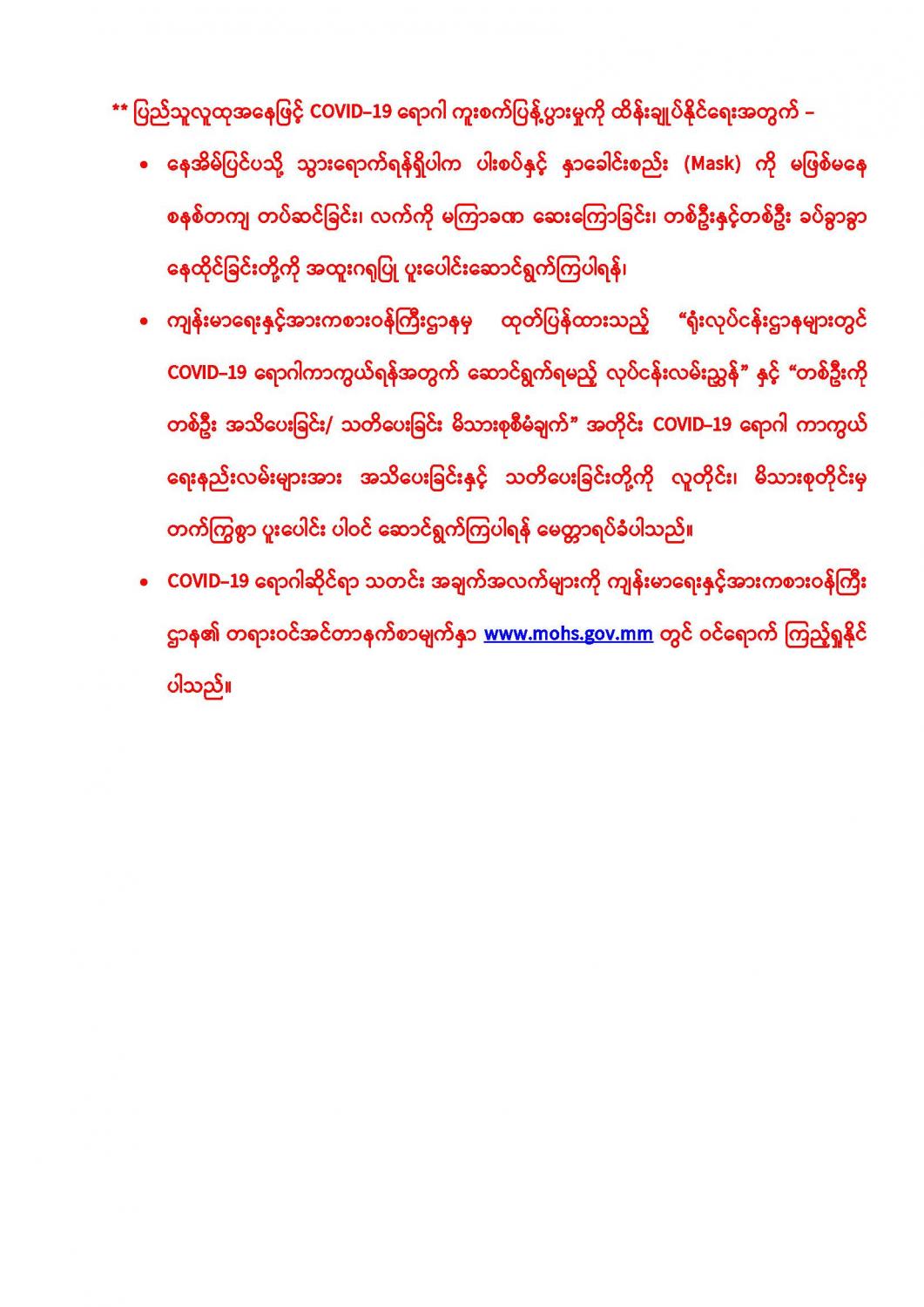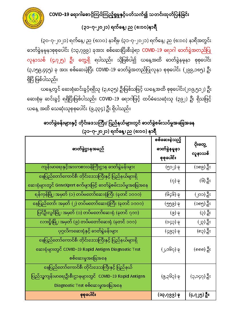 COVID-19 ရောဂါစောင့်ကြပ်ကြည့်ရှုမှုနှင့်ပတ်သက်၍ သတင်းထုတ်ပြန်ခြင်း (၃၁-၇-၂၀၂၁) ရက်နေ့၊ ည (၈:၀၀)နာရီ