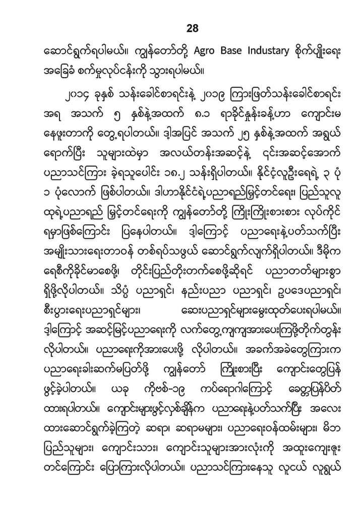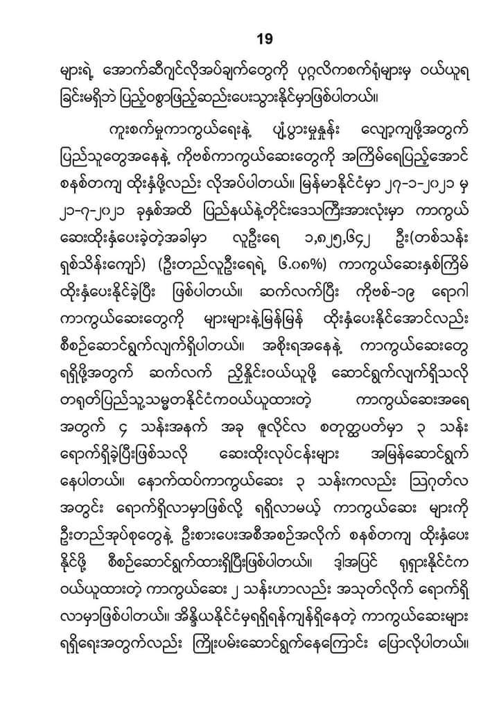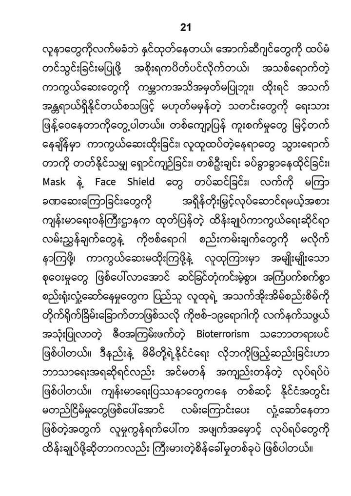 နိုင်ငံတော်စီမံအုပ်ချုပ်ရေးကောင်စီ၏ (၆) လပြည့် နိုင်ငံတော်တာဝန် ထမ်းဆောင်ခဲ့သည့် ၂၀၂၁ ခုနှစ်၊ သြဂုတ်လ ၁ ရက်နေ့တွင် နိုင်ငံတော် စီမံအုပ်ချုပ်ရေးကောင်စီဥက္ကဋ္ဌ ဗိုလ်ချုပ်မှူးကြီး မင်းအောင်လှိုင် ပြောကြားသည့်မိန့်ခွန်း