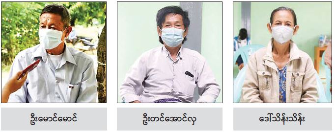 အသက် ၆၅ နှစ် နဲ့အထက် သက်ကြီးရွယ်အိုတွေ ကိုဗစ်ကာကွယ်ဆေး ထိုးရမှာကို ကျေးရွာအုပ်ချုပ် ရေးမှူးက အမှတ် (၃) ကျောင်းမှာ သွားထိုးရမယ်လို့ ကြေညာပေးလို့ သိတာပါ။ ကိုဗစ်-၁၉ ရောဂါက အခုတတိယလှိုင်းမှာ ပိုဆိုး တယ်။ တီဗွီ၊ ရေဒီယို၊ လူမှုမီဒီယာတွေက တစ်ဆင့်သိရတယ်။ ဆေးထိုးရမယ်ဆိုတော့ ကျန်းမာရေးကကောင်းတော့မှာပဲဆိုပြီး စိတ်ထဲ ဝမ်းသာသွားတာပေါ့။ ပထမအကြိမ်က ဗိုက်ခွဲထားတော့ မထိုးလိုက်ရဘူး။ ဆေးထိုးရမယ်ဆိုပြီး ဇီးကုန်းကျေးရွာကနေ ပျဉ်းမနားမြို့ကို နာရီဝက် ဆိုင်ကယ်နဲ့ လာခဲ့တယ်။ သာမန်ပြည်သူတွေငွေနဲ့ဝယ်ပြီးထိုးနှံလို့ မရတဲ့ ကိုဗစ်ကာကွယ်ဆေးကို နိုင်ငံတော်က အခုလို အခမဲ့ထိုးနှံပေးတဲ့ အတွက် ကျေးဇူးတင်တယ်။