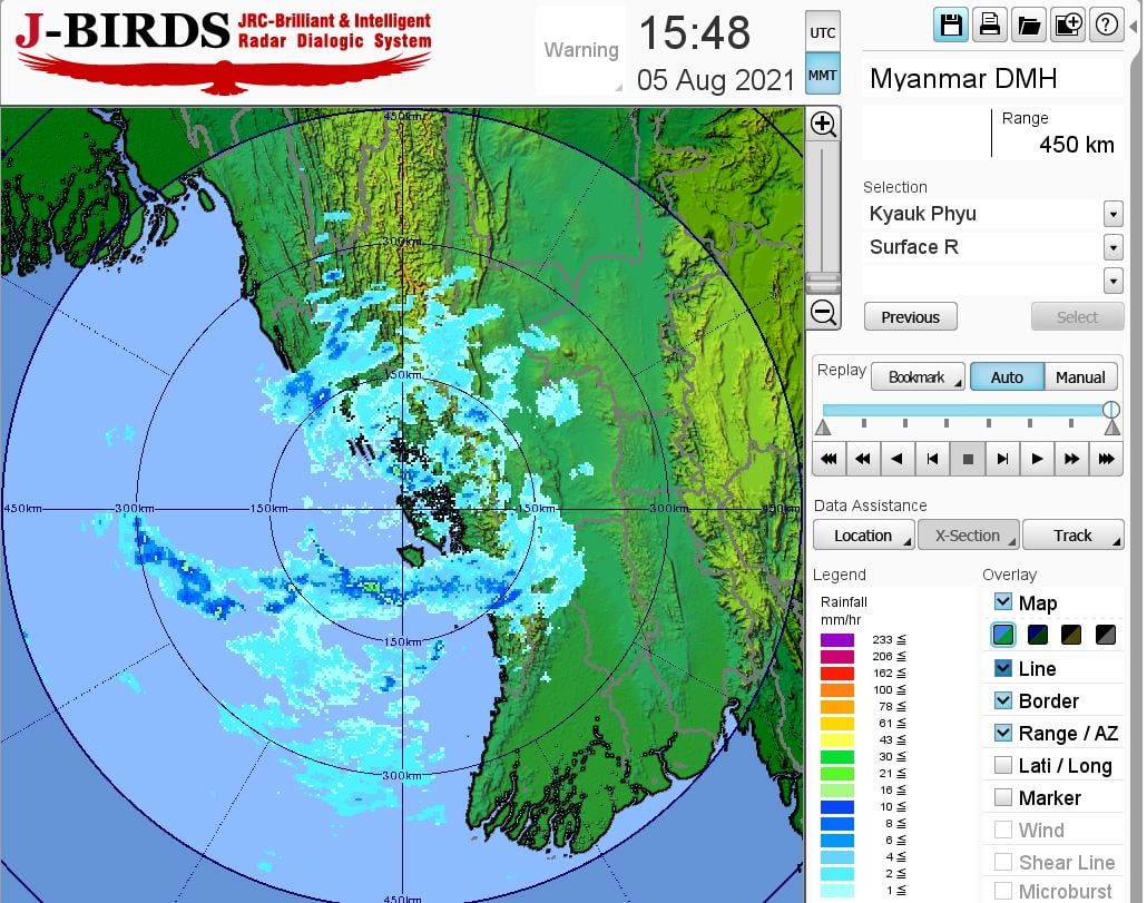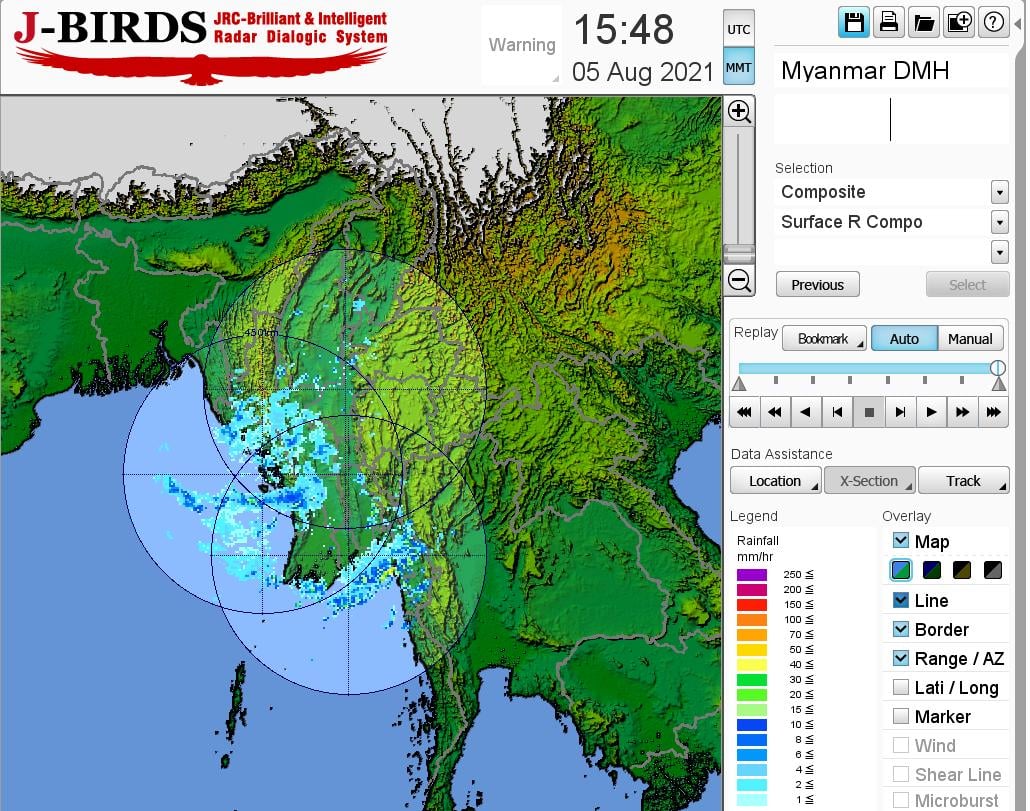 ဘင်္ဂလားပင်လယ်အော်အခြေအနေ။ကပ္ပလီပင်လယ်ပြင်နှင့် ဘင်္ဂလားပင်လယ်အော်တို့တွင် မုတ်သုံလေ အားကောင်းနေပါသည်။