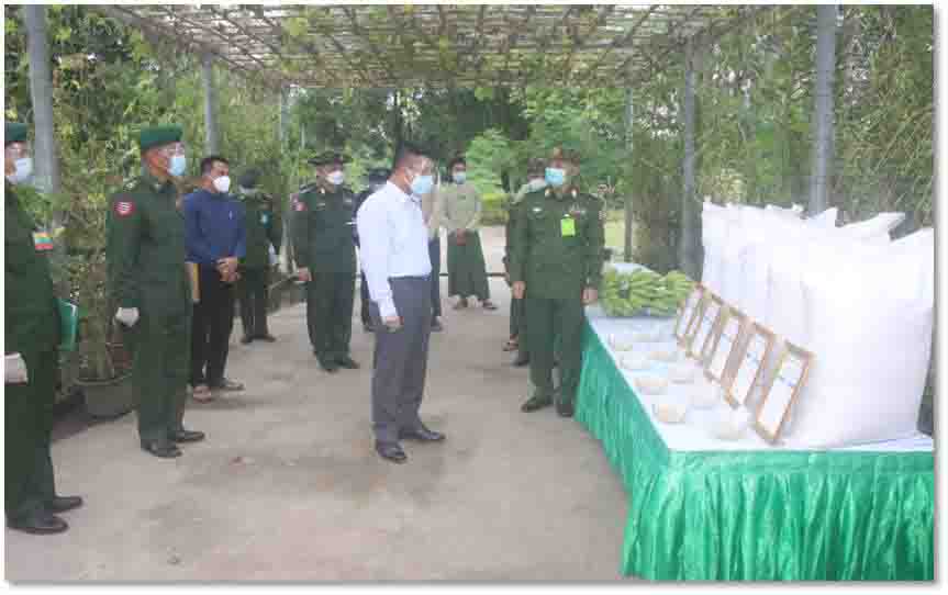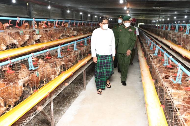ကိုဗစ်-၁၉ ရောဂါ တတိယလှိုင်း ဖြစ်ပွားမှုကြောင့် ရောဂါကာကွယ်၊ ထိန်းချုပ်၊ ကုသရေး လုပ်ငန်းများ ဆောင်ရွက်နေချိန်တွင် ဒေသတွင်း စားနပ်ရိက္ခာ ဖူလုံရေးနှင့် ပြည်သူများ၏ စားသောက်ရေးကို အထောက်အကူဖြစ်စေရန် အတွက် တိုင်းစစ်ဌာနချုပ် နယ်မြေအသီးသီးရှိ အစိုးရ၊ တပ်မတော်နှင့် ပုဂ္ဂလိကပိုင် ဒေသတွင်း စိုက်ပျိုးမွေးမြူရေးနှင့် အခြားလူသုံး ကုန်လုပ်ငန်းများ ကုန်ထုတ်လုပ်မှုရာနှုန်းပြည့် ထုတ်လုပ်နိုင်ရေး ဆောင်ရွက်လျက်ရှိရာ တိုင်း ဒေသကြီးနှင့် ပြည်နယ်အသီးသီးမှ ဝန်ကြီးချုပ်များ၊ တိုင်းမှူးများနှင့် တာဝန်ရှိ သူများက အဆိုပါနေရာများသို့ သွားရောက်ကြည့်ရှုကြပြီး လိုအပ်သည်များ ဖြည့်ဆည်းဆောင်ရွက် ပေးလျက်ရှိသည်။