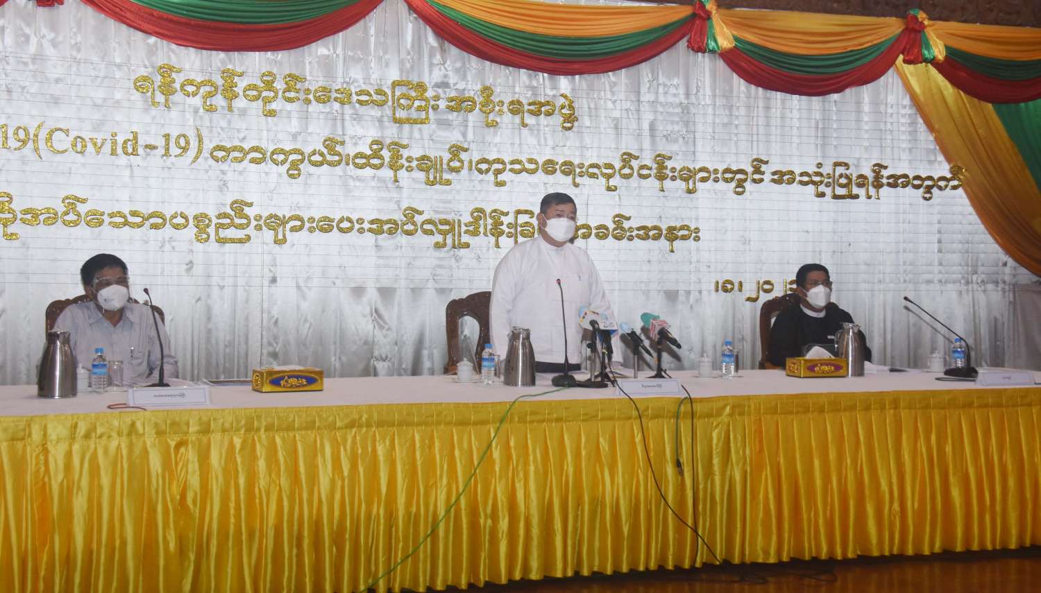 ဇွန်လ နောက်ဆုံးပတ်ကစပြီး ကိုဗစ်-၁၉ တတိယလှိုင်းကို ရန်ကုန်တိုင်းဒေသကြီး အနေဖြင့် စတင်တွေ့ရှိလာကြောင်း၊ ဇူလိုင်လဆန်းမှစ၍ ကိုဗစ်-၁၉ ရောဂါ တတိယလှိုင်း သည် ရန်ကုန်တိုင်းအတွင်း တဖြည်းဖြည်း မြင့်တက်လာခဲ့ကြောင်း၊ မြင့်တက်လာသည့် အတွက် တိုင်းဒေသကြီးအစိုးရအဖွဲ့အနေဖြင့် လှည်းကူး ဖောင်ကြီးစင်တာ၊ဗိုလ်တထောင်၊ မရမ်းကုန်း၊ အင်းယားစင်တာ၊ MCC စင်တာ၊ ဒဂုံမြို့သစ် (ဆိပ်ကမ်း)မြို့နယ် ရိုးမရိပ်သာ စင်တာ၊ သင်္ဃန်း ကျွန်းမြို့နယ်ရှိ သုဝဏ္ဏကုသရေးစင်တာ၊ ဒဂုံမြို့သစ် (တောင်ပိုင်း)မြို့နယ် အောင်မြင့်မိုရ် ကုသရေးစင်တာ၊ လှိုင်ကုသရေးစင်တာ၊ ရန်ကင်းပညာရေးကောလိပ်၊ ဆရာတော် သံဃာ တော်များအတွက် အင်းစိန် မင်းဓမ္မ သီရိမဂ္ဂ သာသနာ့ဗိမ္မာန်၊ မရမ်းကုန်း ကမ္ဘာအေးသံဃာ့ ဆေးရုံများတွင် ဆရာတော် သံဃာတော်များ အတွက် ခုတင် ၃၀၀ ၊ ပြည်သူများအတွက် ခုတင် ၇၅၇၀ ကို ကုသရေးစင်တာများတွင် ပြင်ဆင်ကုသ ဆောင်ရွက်ပေးလျက်ရှိကြောင်း။