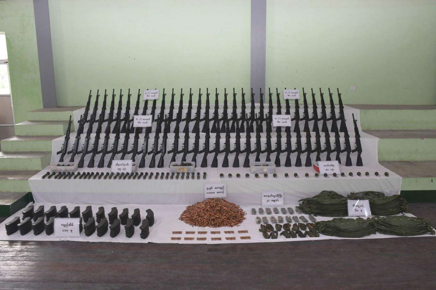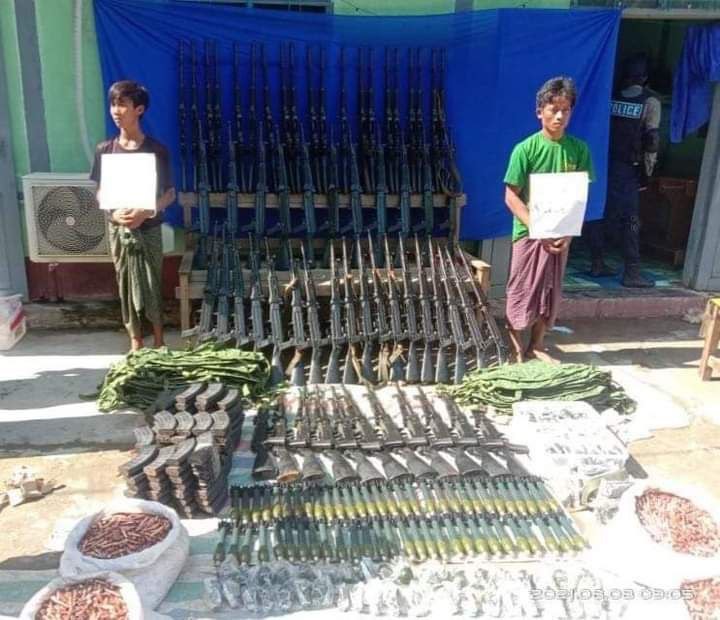 ထိုကဲ့သို့ လုံခြုံရေးဆိုင်ရာ တင်းကြပ်၍ လိုအပ်သည့် စစ်ဆေးခြင်းများကို ဆောင်ရွက်ခဲ့ရာ ယနေ့နံနက်ပိုင်းတွင် တံငါတောင်ကျေးရွာနေ အောင်ကိုမင်း(ဘ) ဦးသန်းညွန့် မောင်းနှင်၍ အာကာဖြိုး(ဘ)ဦးဘရွှေ လိုက်ပါလာသော ၉ဌ/——— ထော်လာဂျီအား မတ္တရာမြို့နယ်၊ ပန်းယျကျေးရွာ သင်္ချိုင်းအနီး၌ လုံခြုံရေးတပ်ဖွဲ့ဝင်များက သတင်းအရ စောင့်ဆိုင်းရှာဖွေ စစ်ဆေးရာ ယာဉ်ပေါ်တွင် မိုးကာဖြင့်ပတ်၍ သယ်ဆောင်လာသည့် K-22 သေနတ် ၆၀ လက်၊ ၎င်းကျည် ၁၁ဝဝဝ တောင့်၊ကျည်အိမ် ၁၁၀ ခု၊ အီနာဂါ ဗုံးသီး ၈၅ လုံး၊ လက်ပစ်ဗုံး ၈၀ လုံး၊ Equipment ၆၀ စုံ၊ သေနတ်လွယ်ကြိုး ၂၁ ချောင်းတို့နှင့် ဖမ်းဆီးရမိခဲ့သည်။